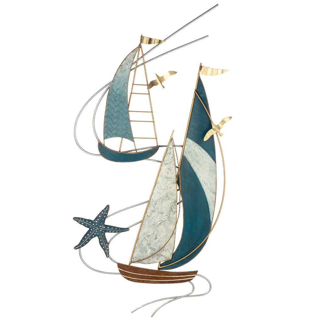 Dieses detailreich gestaltete Wandrelief bringt die Leichtigkeit eines Tages am Meer direkt in den Wohnraum. Die filigrane Komposition aus mehreren Segelbooten, ergänzt durch einen dekorativen Seestern und feine Metalllinien, erzeugt eine lebendige und dynamische Szenerie. Die gewischte Oberfläche verleiht dem Design eine strukturierte, leicht rustikale Note, während die harmonische Farbgebung in Blau und Weiß durch natürliche Akzente stilvoll abgerundet wird. Durch die offene Gestaltung wirkt das Objekt besonders leicht und eignet sich ideal für moderne Wohnkonzepte mit maritimem Charakter.