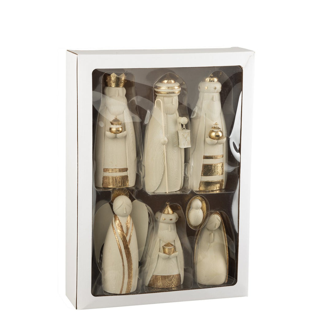 Weihnachtskrippe Set 7 Teilig Polyresin Weiß Gold