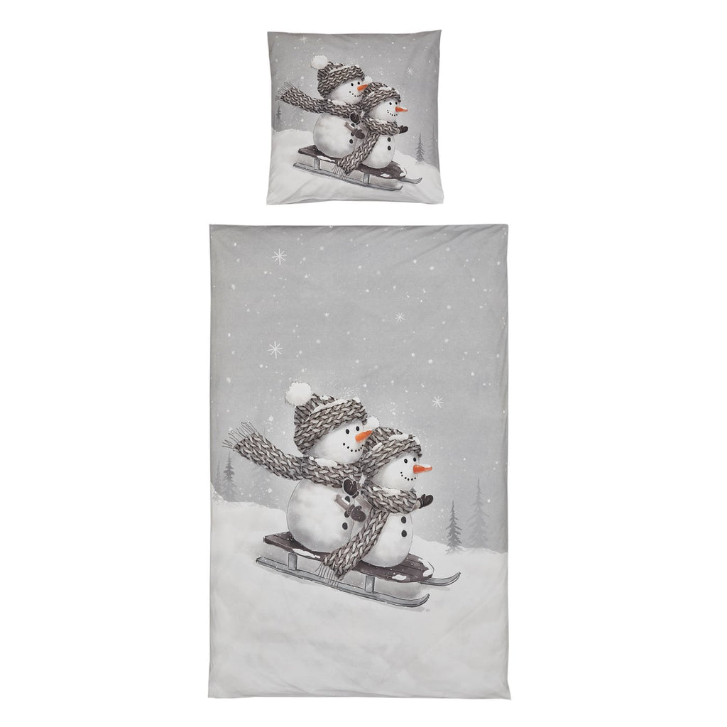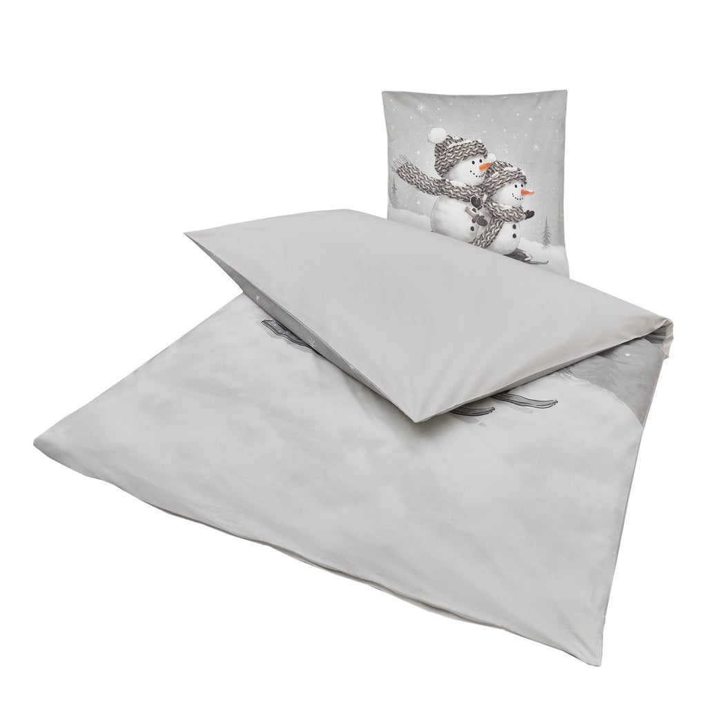 Die Wendebettwäsche Snowy Duo bringt winterliche Gemütlichkeit und eine verspielte Leichtigkeit in Ihr Schlafzimmer. Das liebevoll gestaltete Schneemann Motiv in sanften Grautönen sorgt für eine warme und einladende Atmosphäre, die perfekt zur kalten Jahreszeit passt. Dank der Wendefunktion bietet die Bettwäsche zwei unterschiedliche Optiken und ermöglicht eine flexible Gestaltung des Schlafbereichs. Die matte Oberfläche und das harmonische Farbspiel verleihen dem Design eine ruhige und zugleich dekorative Ausstrahlung.