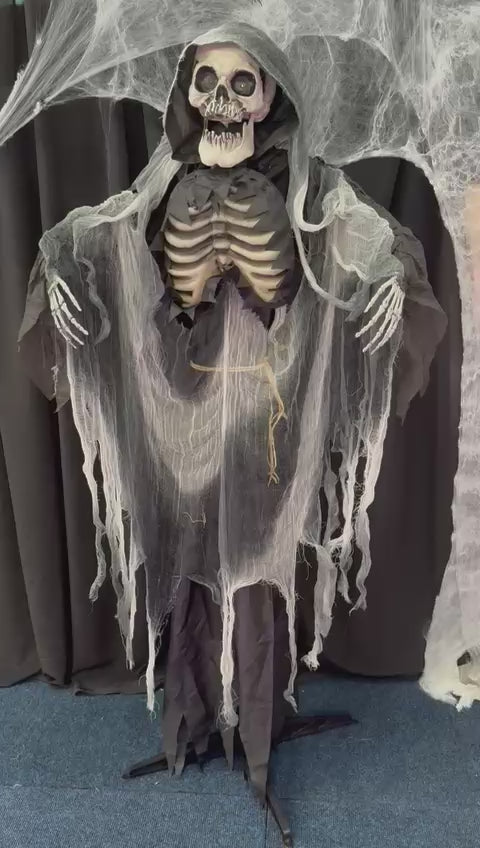 Skelett Vogelscheuche Grimhalm mit Sound Bewegung und LED 165cm