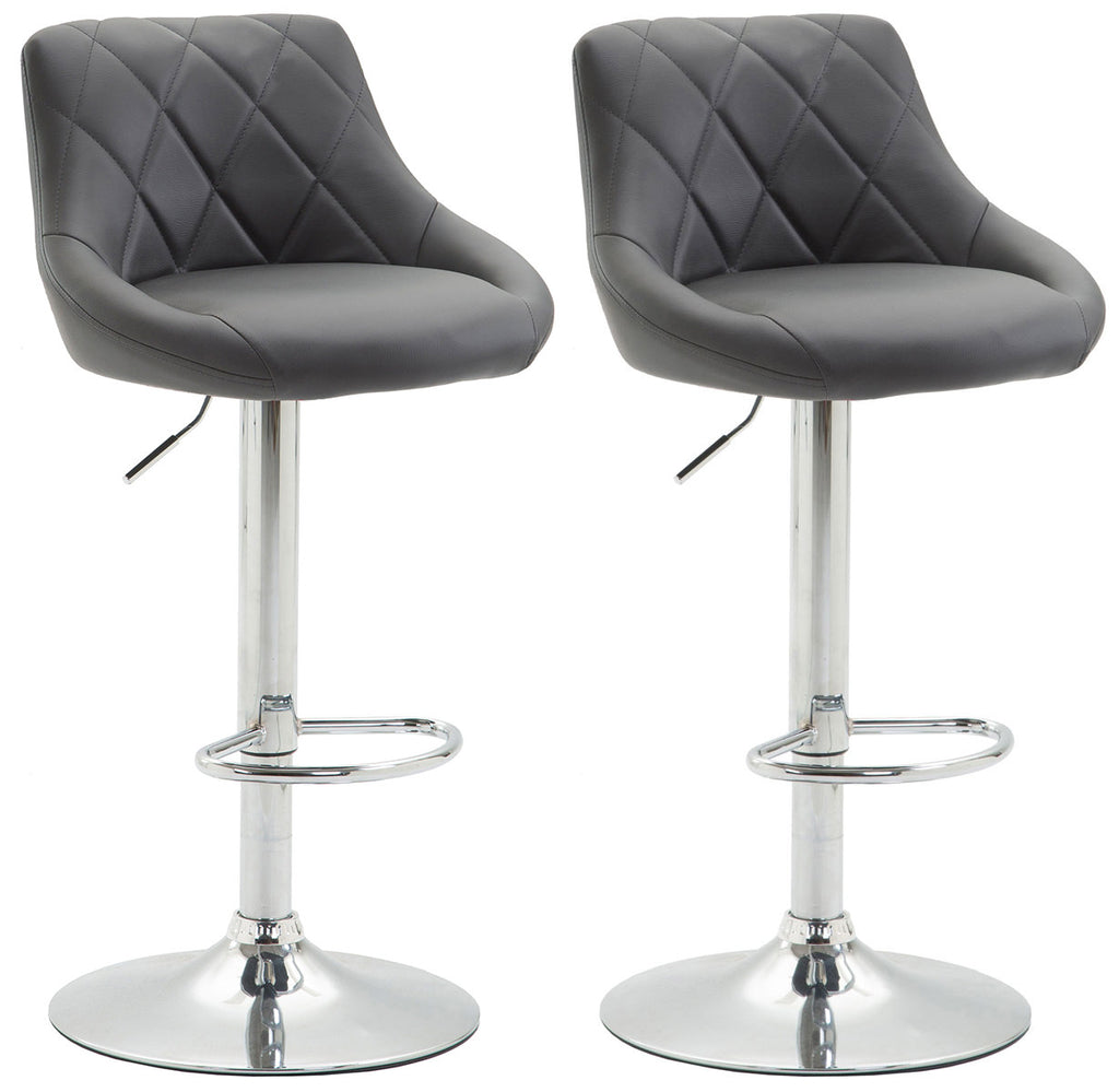 2er Set Barhocker LazioDieser Hocker besticht durch sein stillvolles Design. Der Sitz ist mit Kunstleder bezogen und mit aufwendigen Ziernähten verarbeitet. Mithilfe des Gaslifts lässt sich dieses Modell in der Wunschhöhe stufenlos einstellen, sodass er für jede Thekenhöhe bestens geeignet ist. Die Fußstütze, die einen sehr guten Sitzkomfort gewährleistet, ist synchron mit der Höhe des Sitzes verstellbar. Die Sitzfläche ist mit der Fußablage um 360° drehbar.