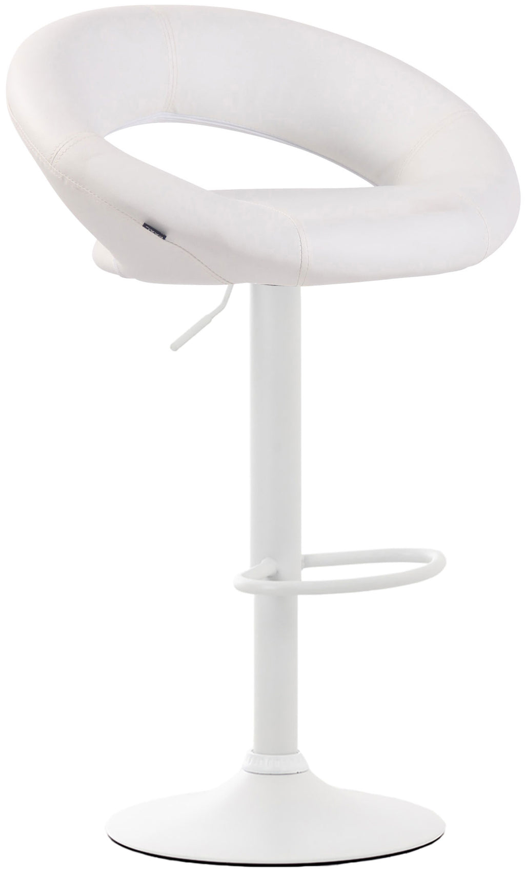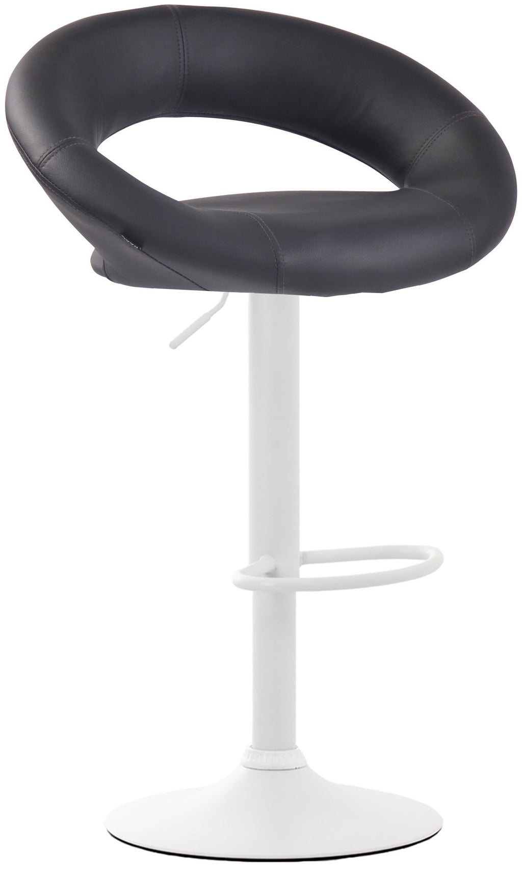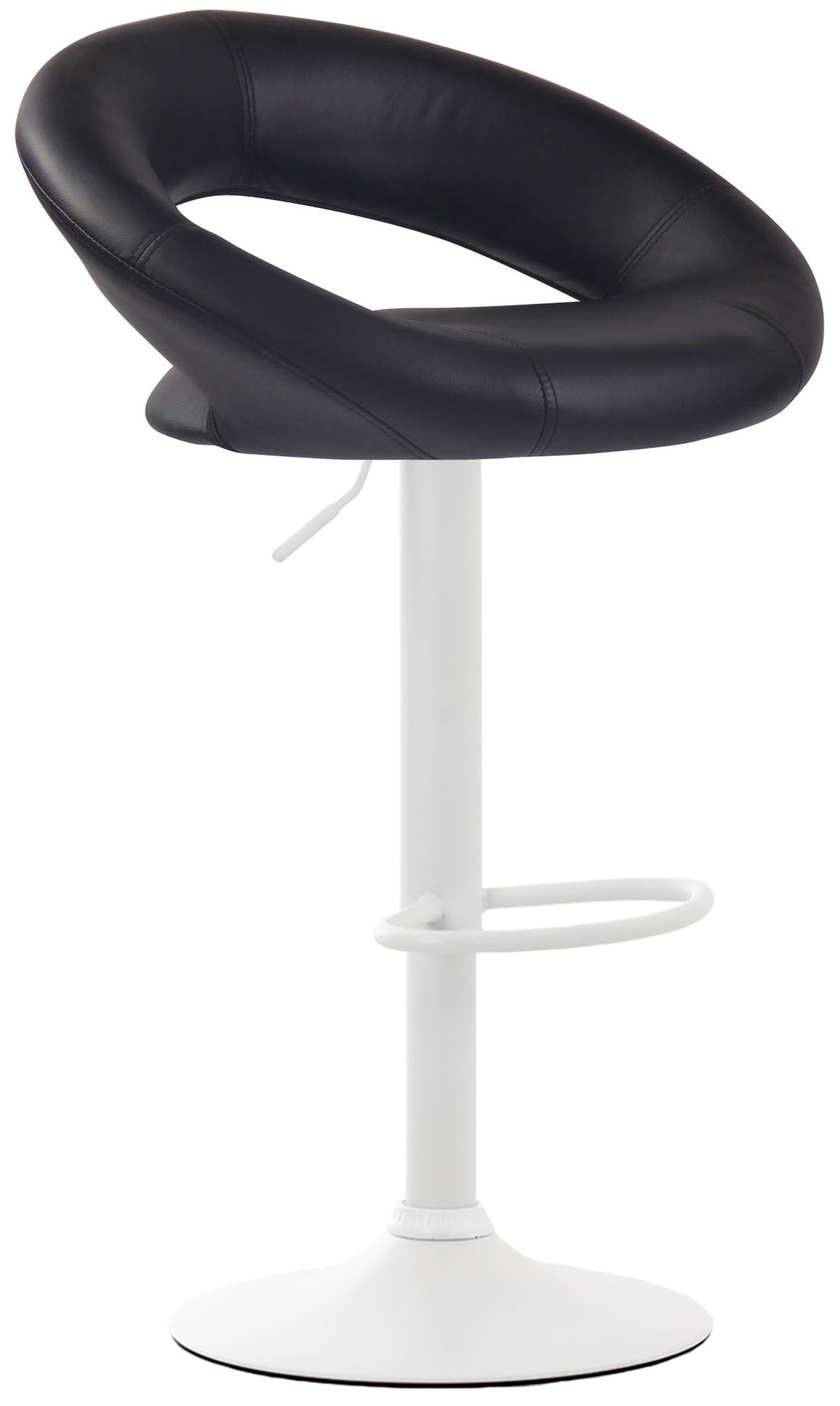 Dieser Barhocker ist eine solide und schöne Sitzgelegenheit für den täglichen Gebrauch. Der Sitz ist mit einem pflegeleichten Kunstlederbezug versehen und besonders bequem gepolstert, die umlaufende Lehne sorgt für zusätzlichen Komfort. Der Thekenhocker ist mittels Gaslift höhenverstellbar sowie um 360° drehbar. Die angebrachte Fußstütze lässt sich synchron mit der Höhe der Sitzfläche einstellen, wodurch ein bequemes Sitzen über mehrere Stunden möglich ist. Der Trompetenfuß aus Metall ist mit einem Bodenschoner ausgestattet, wodurch Kratzer und Beschädigungen auf dem Boden verhindert werden.