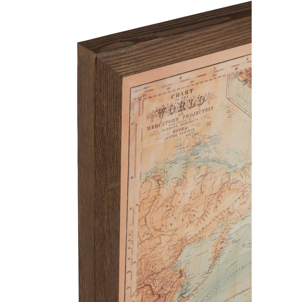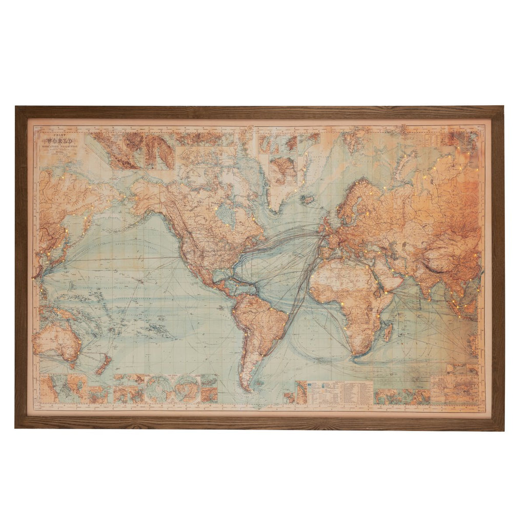 J-Line Rahmen LED Batterie Weltkarte Holz/Leinwand Braun/Natur
