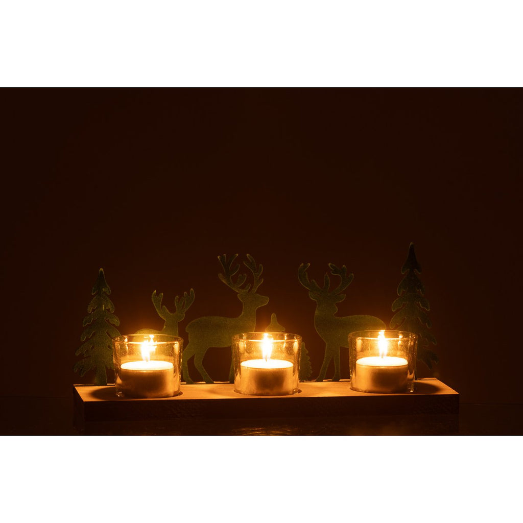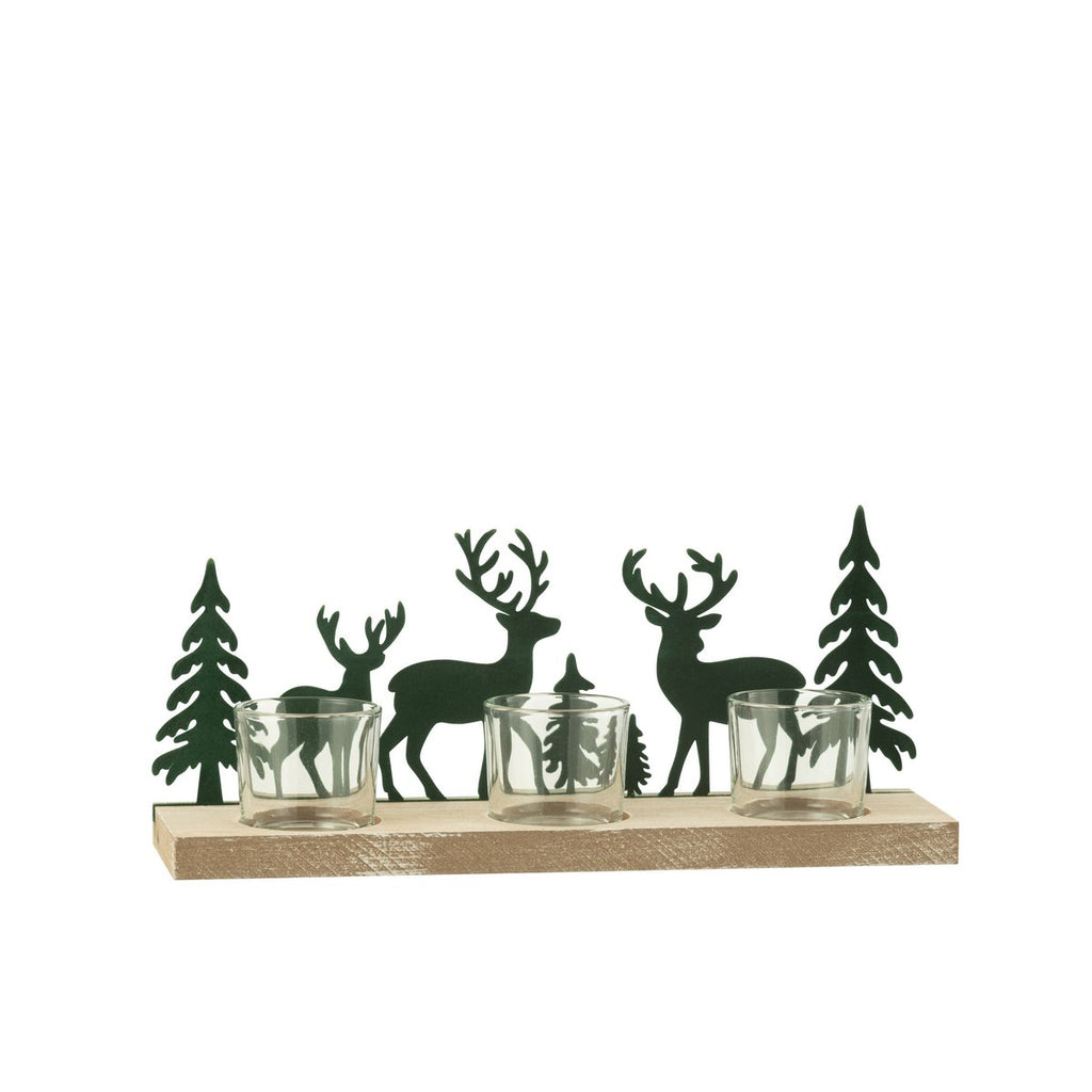 J-Line Teelichthalter 3 Stück Rentier/Bäume Metall/Holz Dunkelgrün