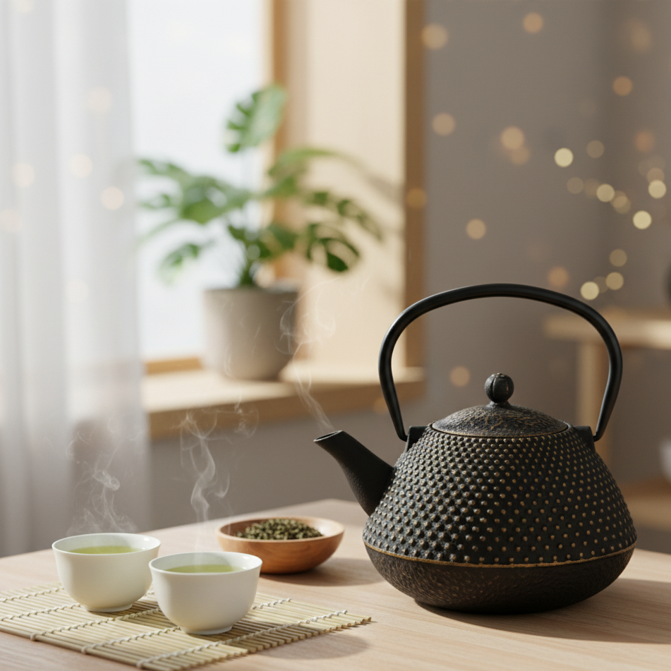 Die Teekanne Sendai vereint fernöstliche Ästhetik mit langlebiger Qualität. Aus massivem Gusseisen gefertigt und mit einer edlen, genoppten Oberfläche samt goldfarbener Patina verziert, ist sie nicht nur ein funktionales Teegefäß, sondern auch ein stilvoller Blickfang. Die innere Emaille-Beschichtung schützt vor Korrosion und erleichtert die Reinigung – für langanhaltende Freude am Teegenuss.