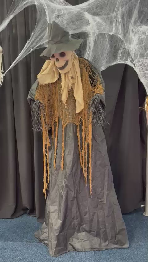 Skelett Vogelscheuche Grimhalm mit Sound Bewegung und LED 165cm