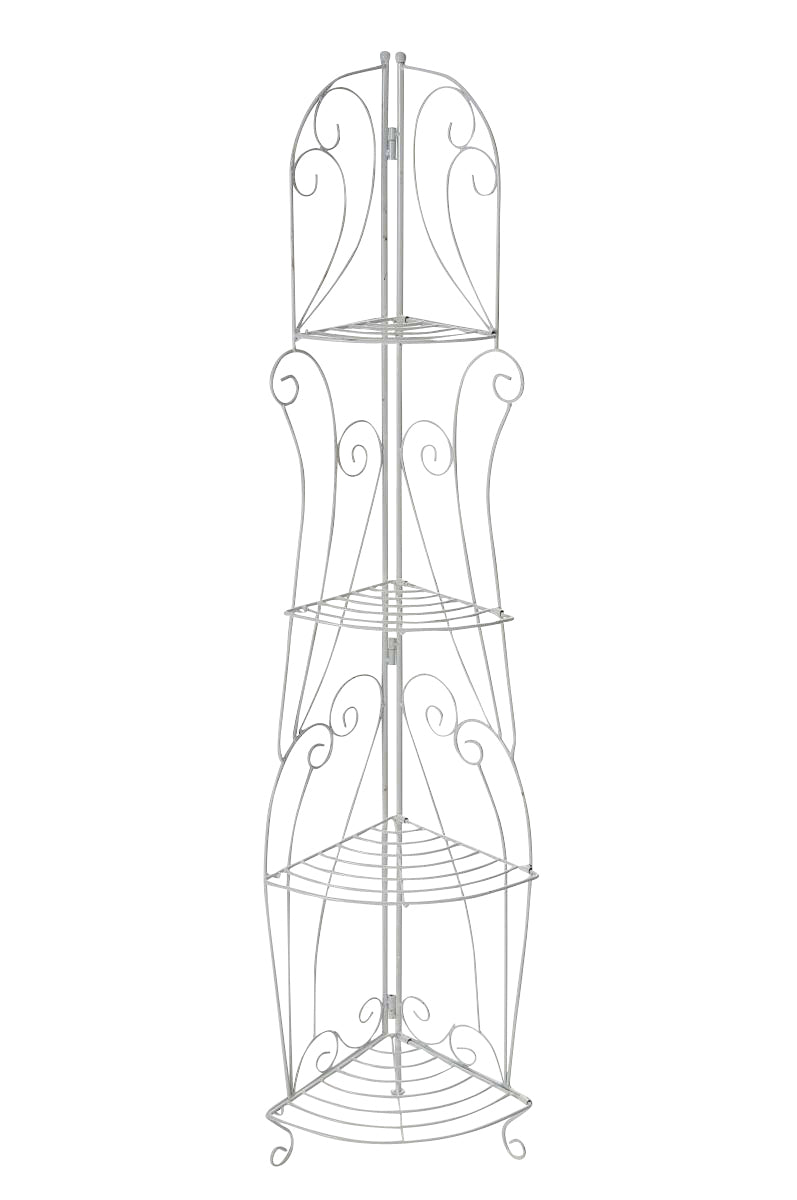 Eine Beschichtung (pulverbeschichtetes Eisen) macht dieses Regal sehr hochwertig und extrem langlebig. Die liebevollen Verzierungen im Landhausstil sehen sehr schön aus und verleihen einen antiken Charakter.