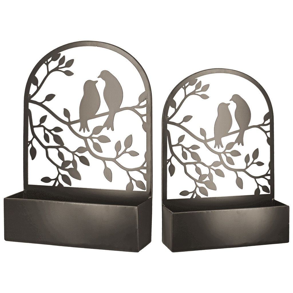 Vogelpaar Pflanzgefäß Set Metall Dunkelbraun