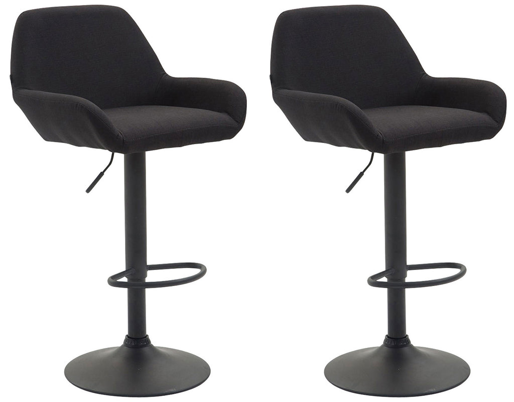 2er Set Barhocker Braga StoffDer Barhocker Braga ist mit einem Stoffbezug versehen. Die dicke Polsterung und die hohe Rückenlehne bieten Ihrem Rücken einen optimalen Halt. Das Gestell aus matt schwarzem Metall gibt dem Barhocker die nötige Stabilität. Mittels eines Gaflifts ist der Barstuhl stufenlos höhenverstellbar. Die integrierte Fußstütze ermöglicht auch über einen längeren Zeitraum eine bequeme Sitzhaltung. Unter der Bodenplatte befindet sich ein Bodenschoner, der Ihren Fußboden vor unschönen Kratzern bewahrt. Der Barhocker ist in bis zu 6 verschiedenen Farben erhältlich.