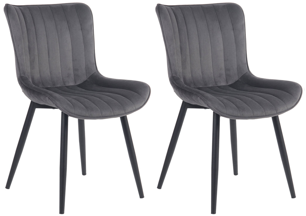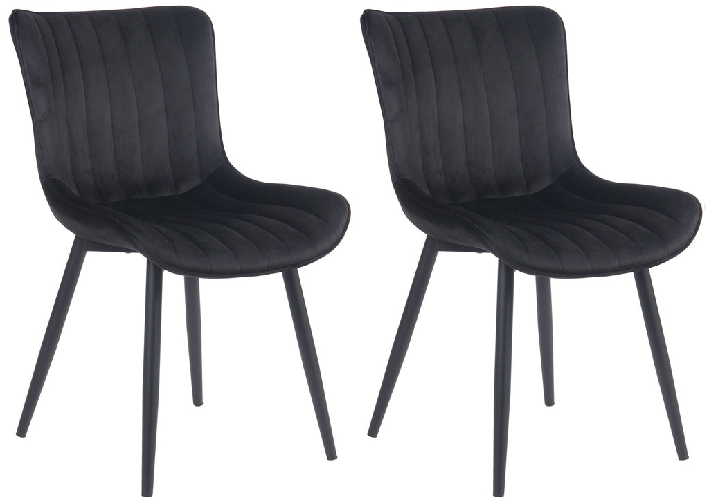 Das 2er Set Stühle Largo mit Samtbezug oder mit Kunstlederbezug bereichert wohnlich moderne Räumlichkeiten perfekt und zieht in jedem Raum die Blicke auf sich. Mit seiner komfortablen Rückenlehne und der angenehmen Polsterung ermöglicht er auch langanhaltenden Sitzkomfort. Die Verwendung pflegeleichter Materialien gewährleistet eine mühelose Reinigung des Esszimmerstuhls zu jeder Zeit. Getragen von einem zeitgemäßen 4-Fuß Metallgestell präsentiert sich der Stuhl bei jeder Gelegenheit vorteilhaft. Zudem sind Bodenschoner an den Füßen angebracht, um den Boden vor Kratzern zu schützen.
