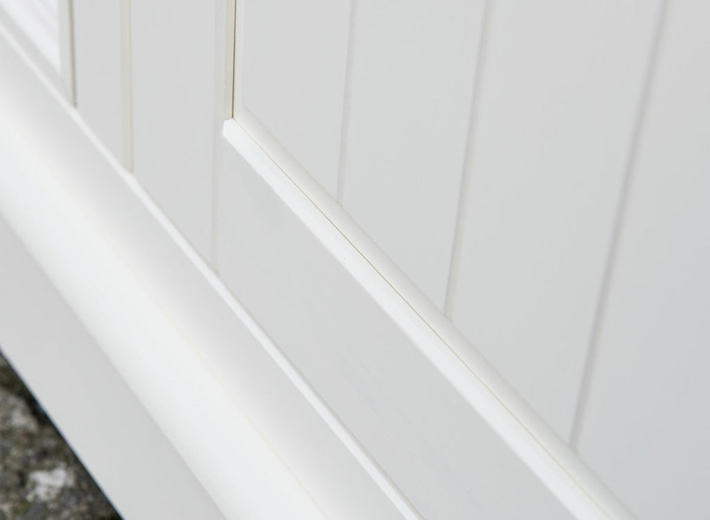 Hergestellt aus finnischem Kiefernholz, überzeugt diese Kommode durch ihre Langlebigkeit, Stabilität & natürliche Schönheit. Die Eichenholz-Tischplatte bildet einen stilvollen Kontrast zur weißen Lackierung (RAL 9010, 85 % Deckkraft), die die feine Holzmaserung elegant durchscheinen lässt.