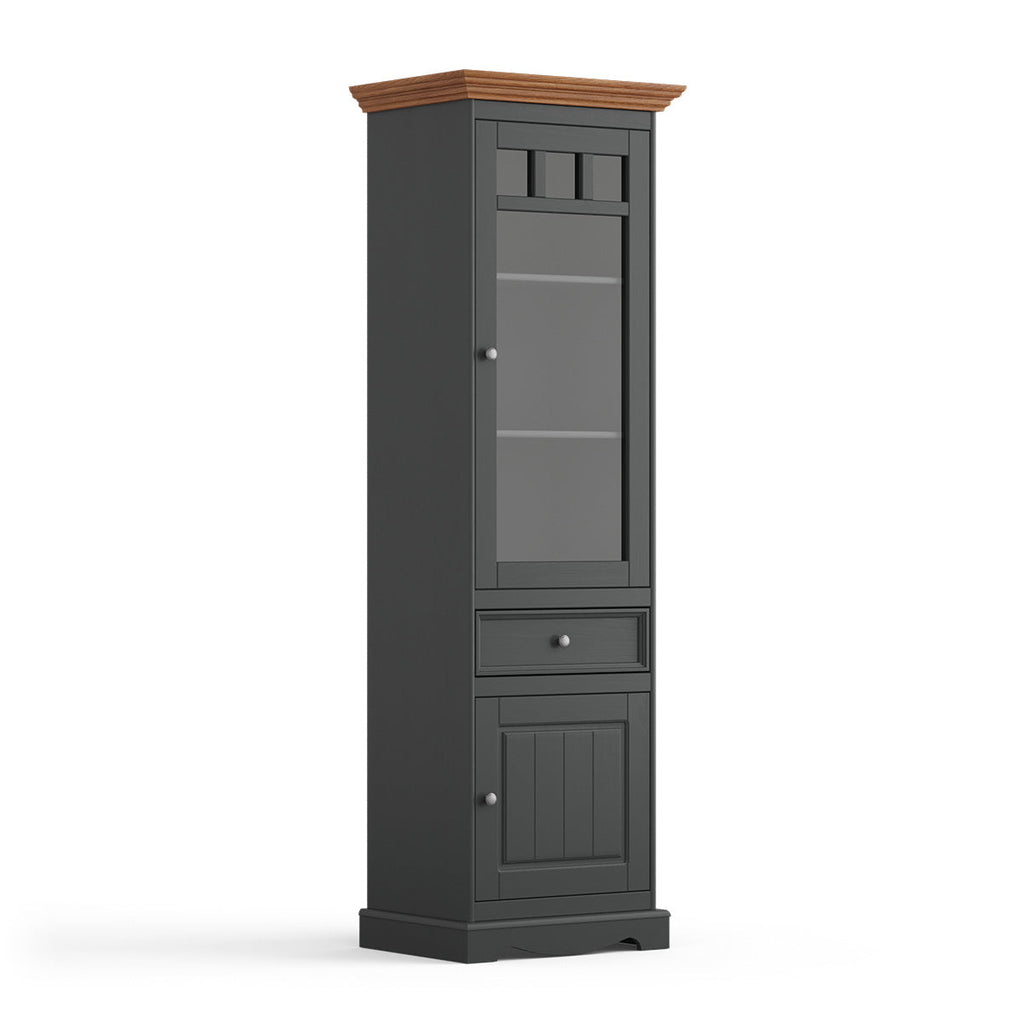 Bologna Elegante Massivholz Kiefer Vitrine 1-Türig | Farbe Graphit - Eiche