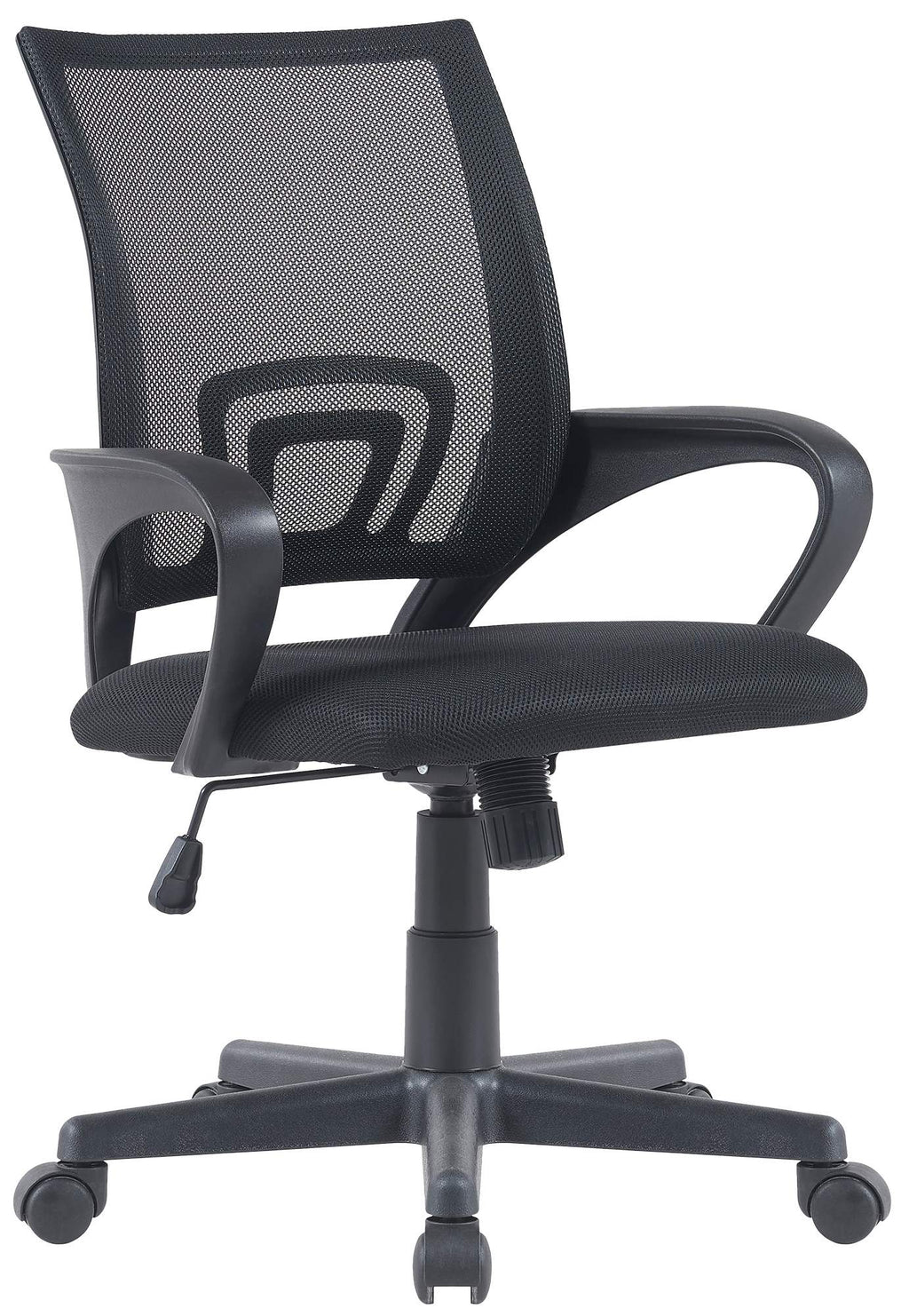 Das Gestell ist sehr stabil. Dank der verstellbaren Sitzhöhe ist ergonomisches Sitzen garantiert. Die Sitzhöhe ist mit dem Hebel unter dem Sitz stufenlos verstellbar. Außerdem verfügt der Drehstuhl über eine Wippmechanik. Über den Drehknopf unter der Sitzfläche kann der Widerstand bzw. die Spannung der Kippfunktion eingestellt werden.