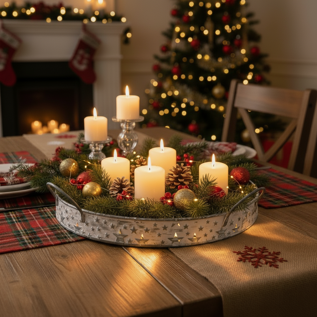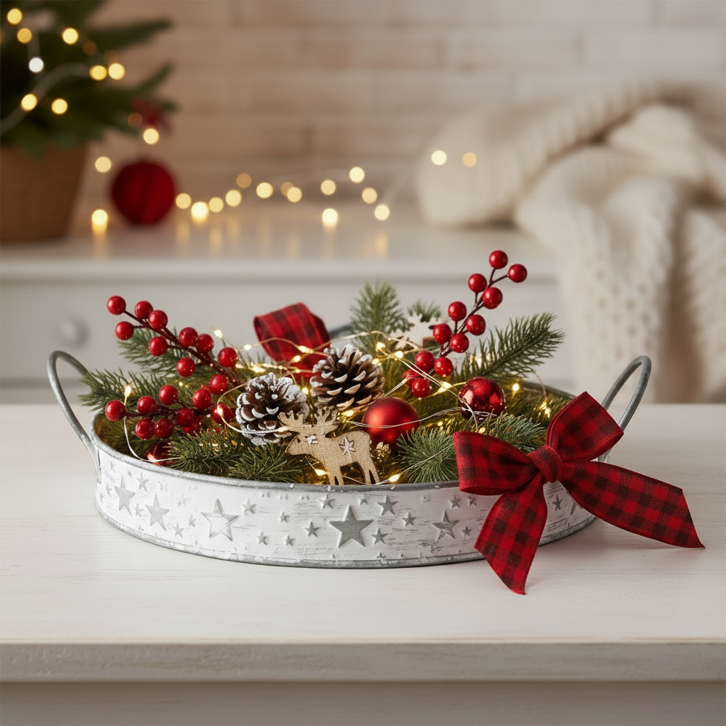 Das Deko Tablett Stephanus vereint rustikalen Charme mit festlicher Eleganz. Gefertigt aus robustem Metall und veredelt mit einem dekorativen Sternenmuster, ist es ein vielseitiger Hingucker für Ihre Wohnräume. Ob als stilvolle Basis für Kerzenarrangements, als Unterlage für saisonale Deko oder zum Servieren kleiner Köstlichkeiten – dieses Tablett bringt Gemütlichkeit und Stil in Ihr Zuhause. Die stabilen Henkelgriffe sorgen für einen sicheren Transport und runden das charmante Design im Vintage-Look gekonnt ab.