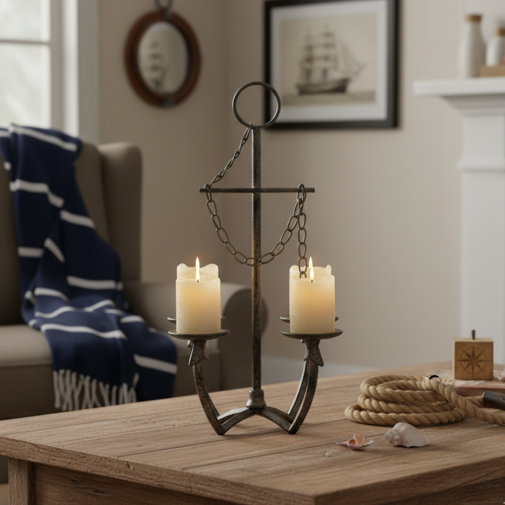 Der Kerzenleuchter Anchor überzeugt durch sein ausdrucksstarkes Design und seine handwerkliche Verarbeitung. In Form eines Ankers gestaltet, bringt er einen maritimen und zugleich rustikalen Charakter in Ihr Zuhause. Das massive Gusseisen verleiht dem Leuchter eine besondere Wertigkeit und sorgt für einen stabilen Stand. Die matte, braune Oberfläche unterstreicht den ursprünglichen Look und lässt den Kerzenleuchter besonders authentisch wirken. Mit Platz für vier Stabkerzen schafft Anchor eine stimmungsvolle Atmosphäre und eignet sich ideal als dekorativer Blickfang auf Tischen, Sideboards oder Kommoden. Jedes Stück ist handgearbeitet und damit ein Unikat mit individuellem Charakter.
