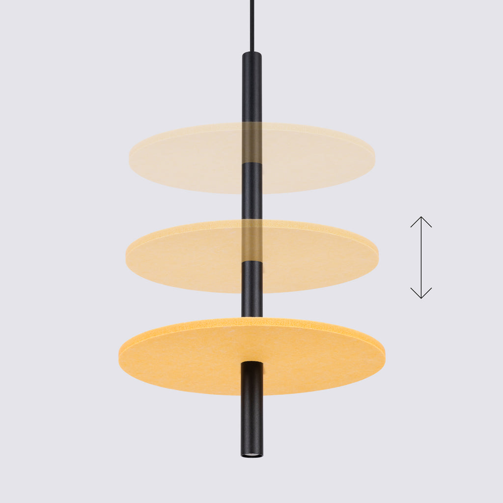 FELTRO ist eine Lampe, die Ästhetik mit Funktionalität verbindet. Die Filzscheibe bietet ein markantes dekoratives Element, während das Stahlrohr eine flexible Höhenverstellung ermöglicht, wodurch die Lampe für jeden Raum geeignet ist, unabhängig von seiner Größe.