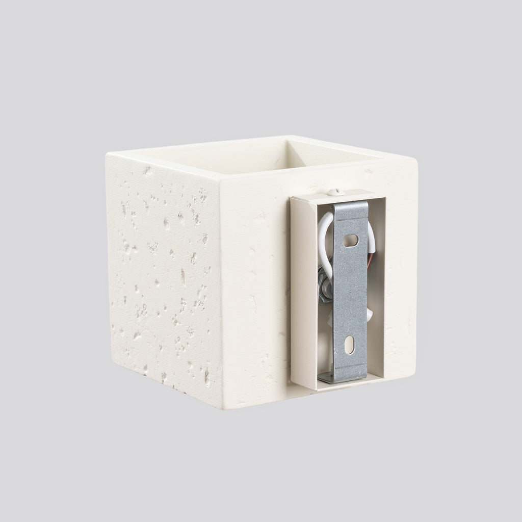 Diese Lampe, erhältlich als Wandleuchte und Deckenleuchte, ist ein Vorschlag für Liebhaber des zeitgenössischen Designs, die die Kombination aus Einfachheit und origineller Form schätzen. Der geometrische Körper zieht die Blicke auf sich und wird zu einem einzigartigen dekorativen Akzent in jedem Innenraum.