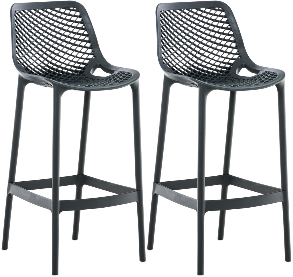 Die Barhocker besitzen Bodenschoner unter den Stuhlbeinen, sodass empfindliche Untergründe geschont werden. Dabei sind die Vierfußgestelle standsicher und stabil. Details: Gesamtbreite: 45 cm Gesamthöhe: 105 cm Gesamttiefe: 53 cm Sitzhöhe: 75 cm Sitzfläche (B x T): 45 x 40 cm Höhe Rückenlehne: 30 cm Max. Belastbarkeit: 160 kg Gewicht: 5 kg Materialzusammensetzung: 100 % Polypropylen Lieferumfang: 2 Barhocker Air