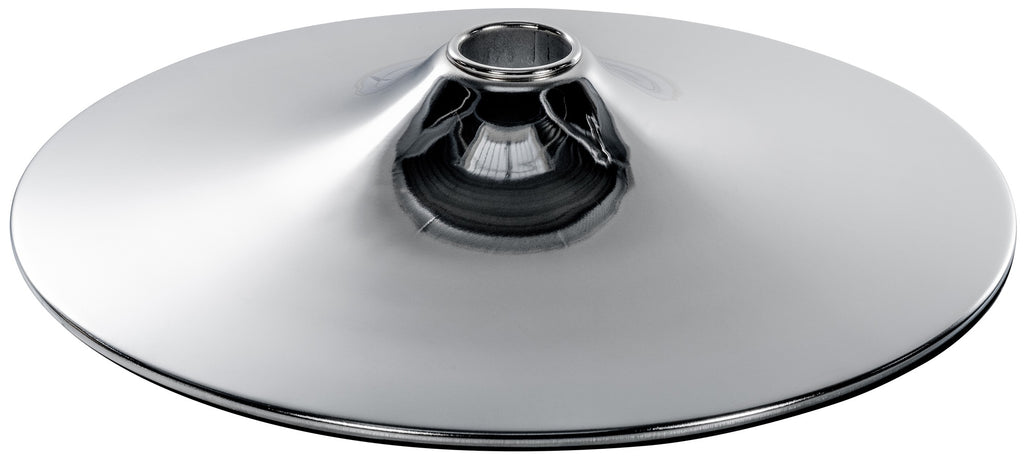 Maße: Höhe: 85 mm Durchmesser: 385 / 400 / 415 / 450 mm Gewinde-Durchmesser: 50 mm (M50) Stärke Bodenplatte: 1,5 mm Gewicht: ca. 3,5 kg Material & Farben: Material: Metall, verchromt oder schwarz matt (bei Ø 385 mm & 450 mm) Bodenschutz: umlaufender Gummiring für rutschfesten Stand Oberfläche: glatt, pflegeleicht, widerstandsfähig Farbe: Chrom glänzend oder Schwarz matt Kompatibilität: Für Gasdruckfedern mit M50-Gewinde geeignet Universell passend für viele Barhocker, Esszimmerstühle und Loungesessel Eigenschaften: Hohe Stabilität durch massives Metall Rutschfest durch Gummierung Bodenschonend auf Fliesen, Holz und Vinyl Sicherer Halt bei täglicher Nutzung Einfache Montage durch genormtes Gewinde Pflegehinweise: Leichte Verschmutzungen mit feuchtem Baumwolltuch abwischen Keine aggressiven oder scheuernden Reinigungsmittel verwenden Trocknen mit weichem Tuch, um Glanz zu erhalten Gummiring regelmäßig auf festen Sitz prüfen