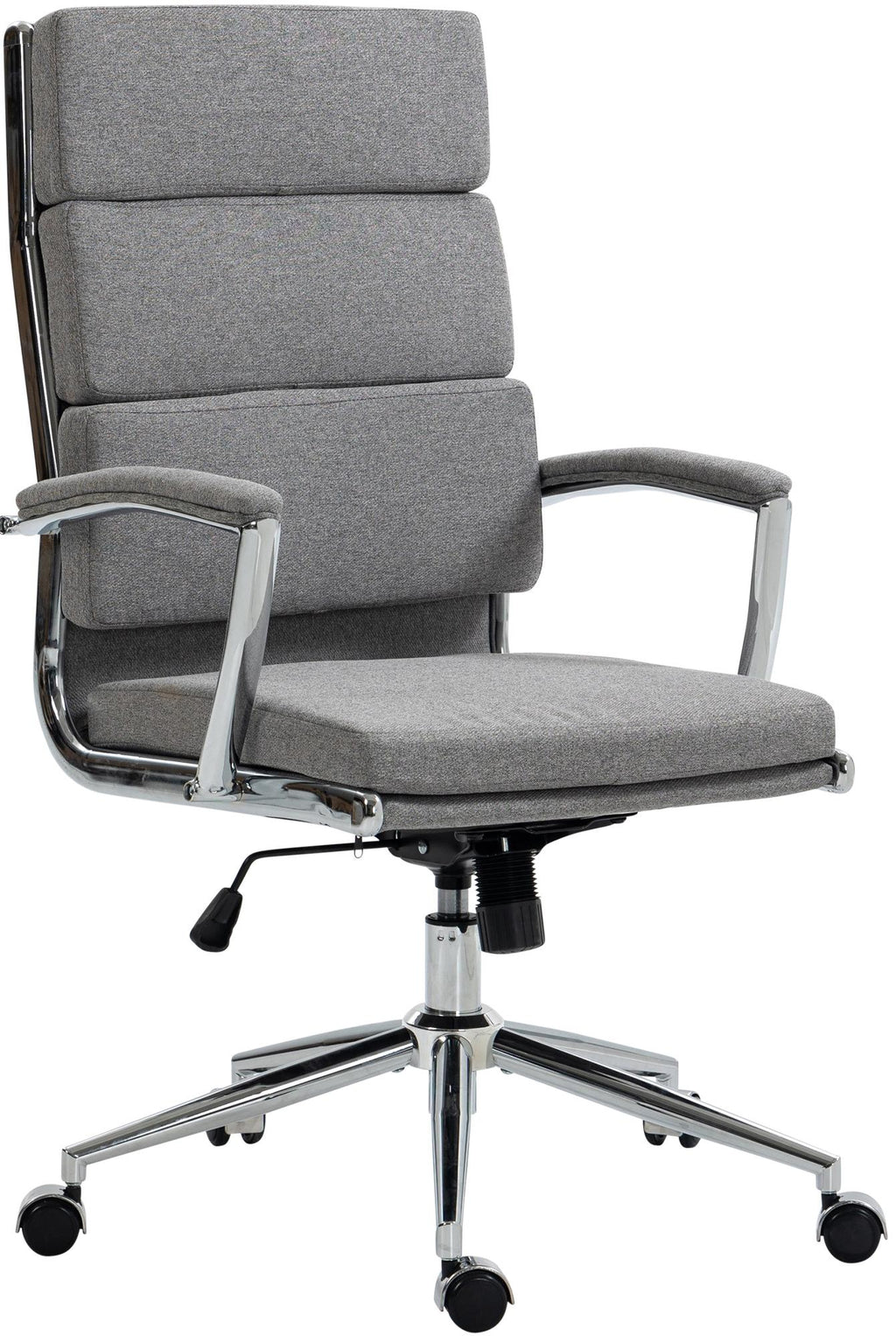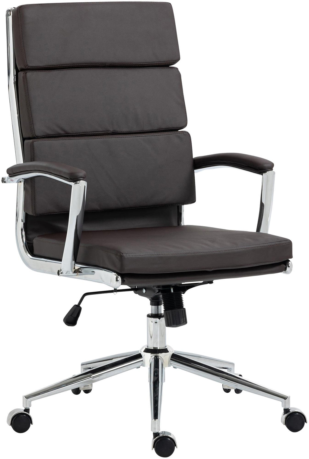 Der Bürostuhl Cleveland vereint ergonomisches Design mit individuellem Komfort und stilvoller Optik. Er ist die perfekte Ergänzung für jedes Büro, in dem Gesundheit und Wohlbefinden am Arbeitsplatz großgeschrieben werden. Die dreifach gepolsterte Rückenlehne und die ergonomische Form unterstützen Ihre natürliche Sitzhaltung. Mit der höhenverstellbaren Sitzfläche, der einstellbaren Wippfunktion und den 360° drehbaren Leichtlaufrollen passt sich der Stuhl flexibel Ihren Bedürfnissen an. Die Auswahl zwischen Echtleder, Kunstleder oder Stoffbezug ermöglicht eine individuelle Gestaltung nach Ihrem persönlichen Geschmack. Das Chromgestell bietet Stabilität und eine lange Lebensdauer. Mit seiner breiten Sitzfläche bietet der Cleveland auch an langen Arbeitstagen optimalen Sitzkomfort.