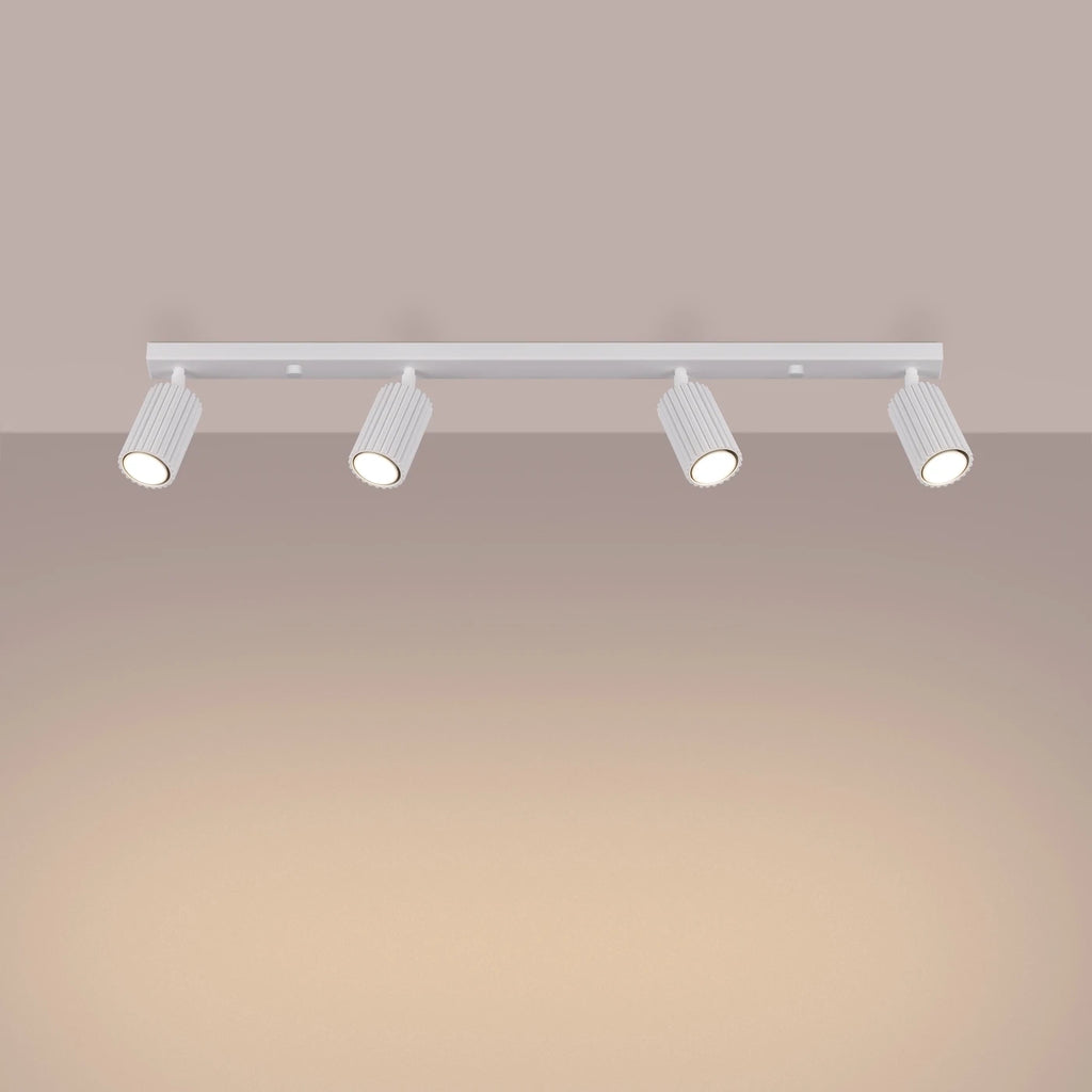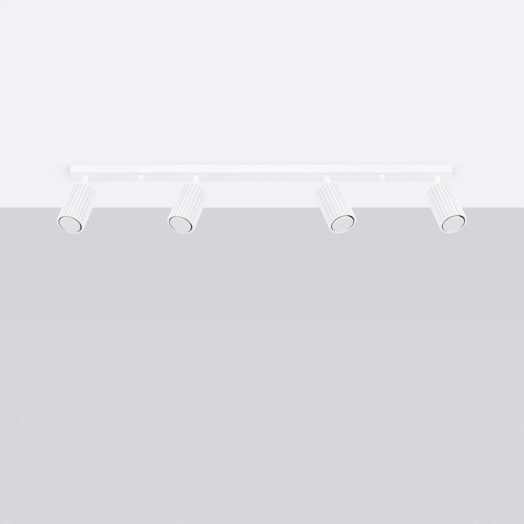 Die Deckenleuchte Karbon 4L in weißer Ausführung bringt minimalistische Ästhetik und Funktionalität in perfekter Balance zusammen. Mit ihrer schmalen, länglichen Form und der einzigartig geriffelten Struktur passt sie sich modernen Wohnkonzepten nahtlos an. Die vier zylindrischen Lichtspots aus hochwertigem Aluminium sind entlang einer 81 cm langen Leiste angeordnet und können individuell ausgerichtet werden – ideal für gezielte Beleuchtung im Flur, Essbereich, Schlafzimmer oder der Küche. Das klare Weiß und das schlanke Design machen die Karbon 4L zur stilvollen Lösung für puristische Lichtgestaltung mit Charakter.