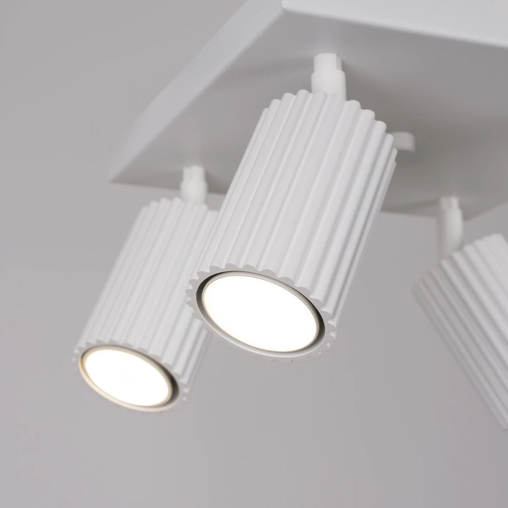 Die Deckenleuchte Karbon in der vierflammigen Ausführung überzeugt mit klarer, moderner Formensprache und durchdachter Funktionalität. Gefertigt aus hochwertigem Aluminium in elegantem Weiß, fügt sie sich nahtlos in moderne Wohnkonzepte ein – sei es im Flur, Wohnzimmer, Schlafzimmer oder der Küche. Das minimalistische Design mit der geriffelten Oberflächenstruktur verleiht der Leuchte eine besondere Tiefe und eine dezente Dynamik. Die vier zylindrischen Lichtquellen mit GU10-Fassung sind individuell ausrichtbar und ermöglichen eine gezielte Beleuchtung genau nach Wunsch. Durch die Vielzahl an Varianten und Farben innerhalb der Karbon-Serie lässt sich die Leuchte harmonisch in unterschiedlichste Einrichtungsstile integrieren.