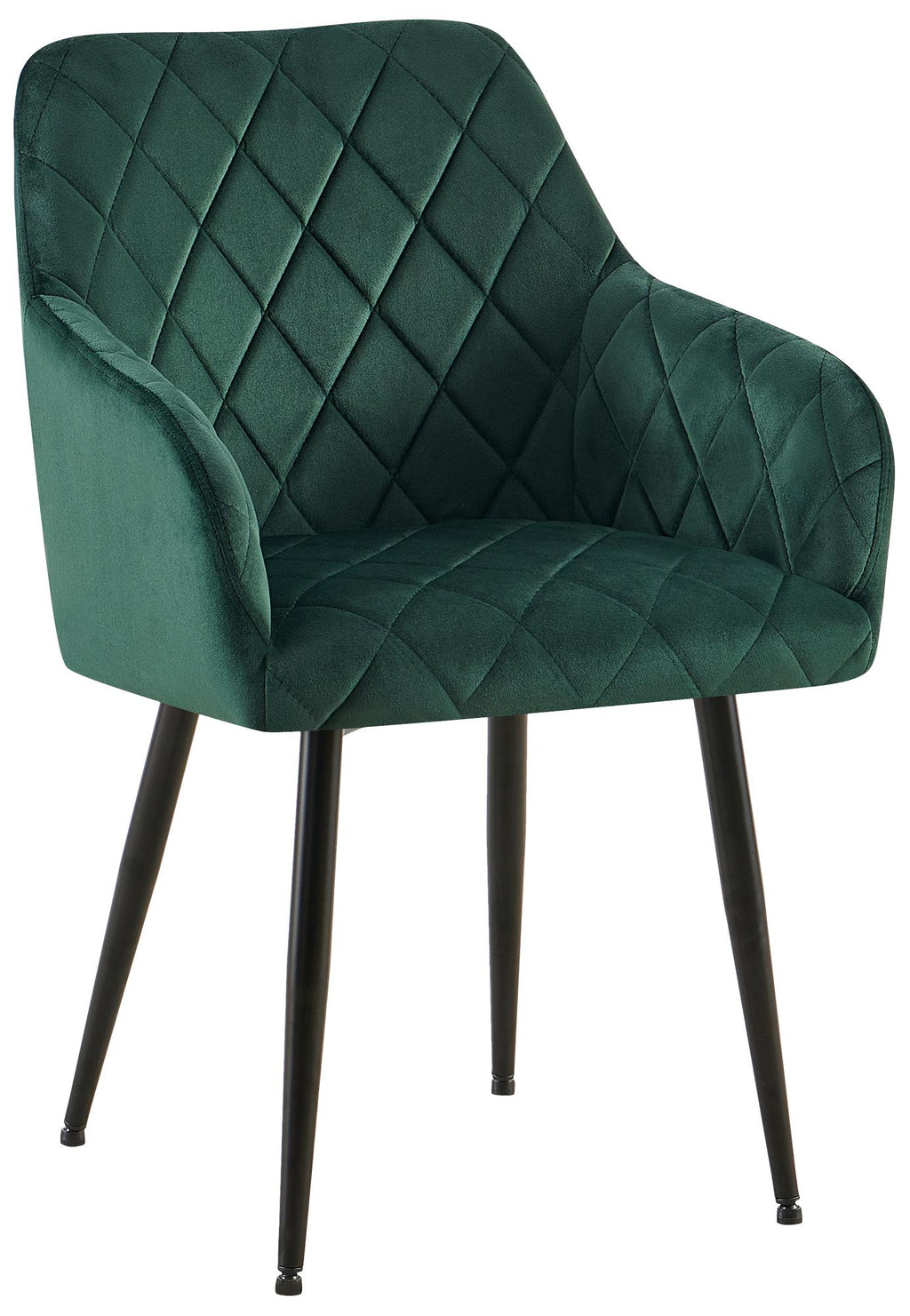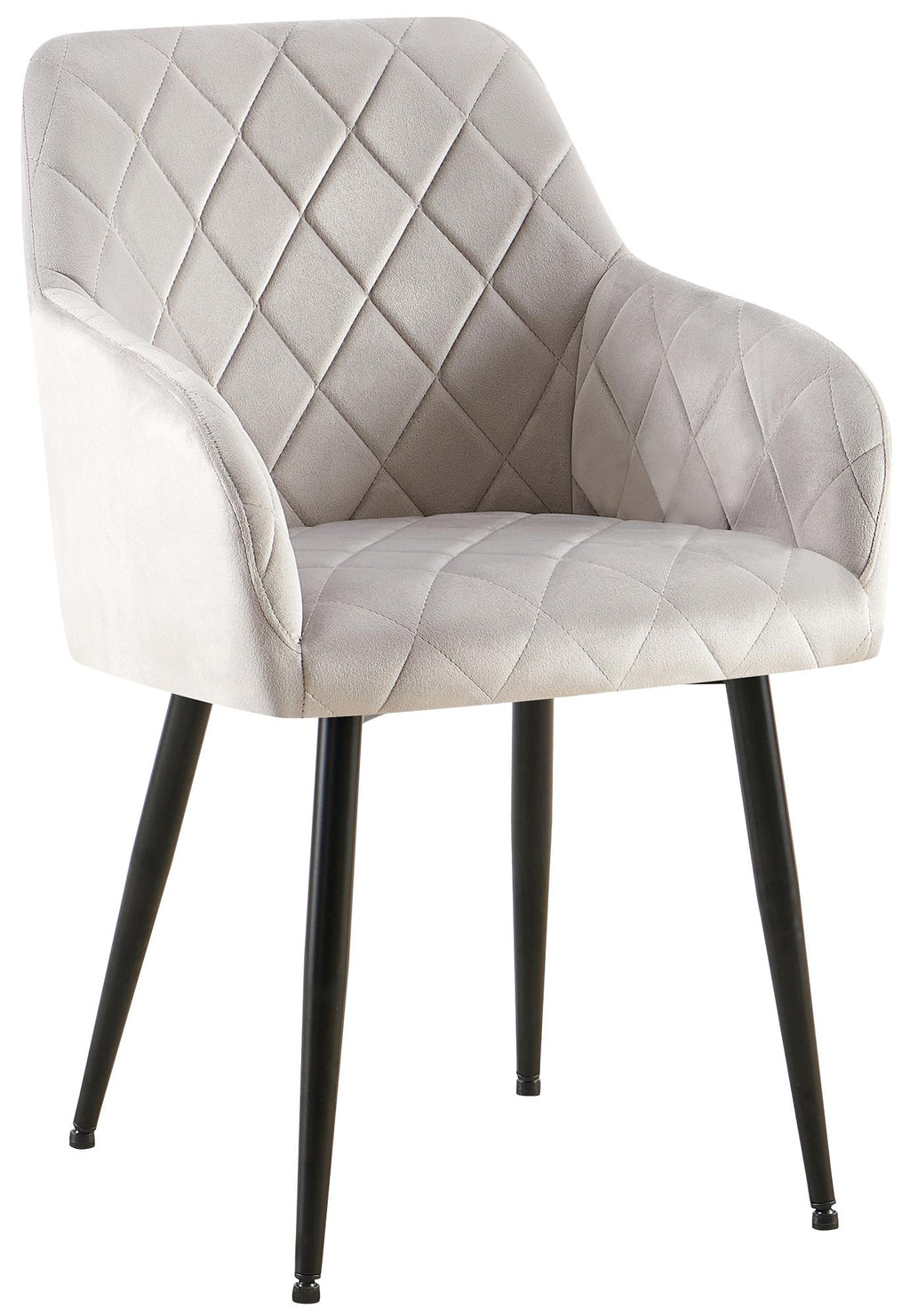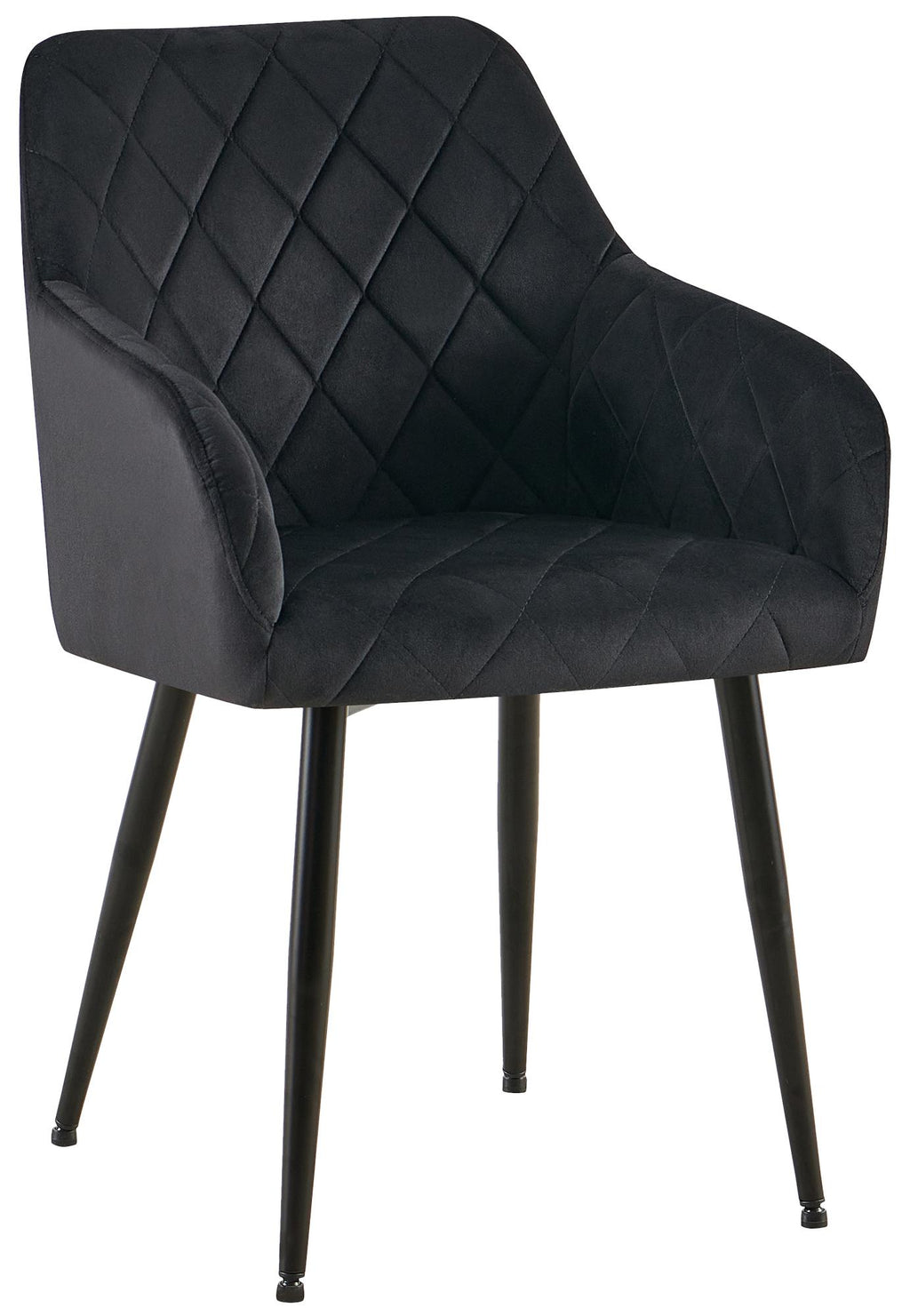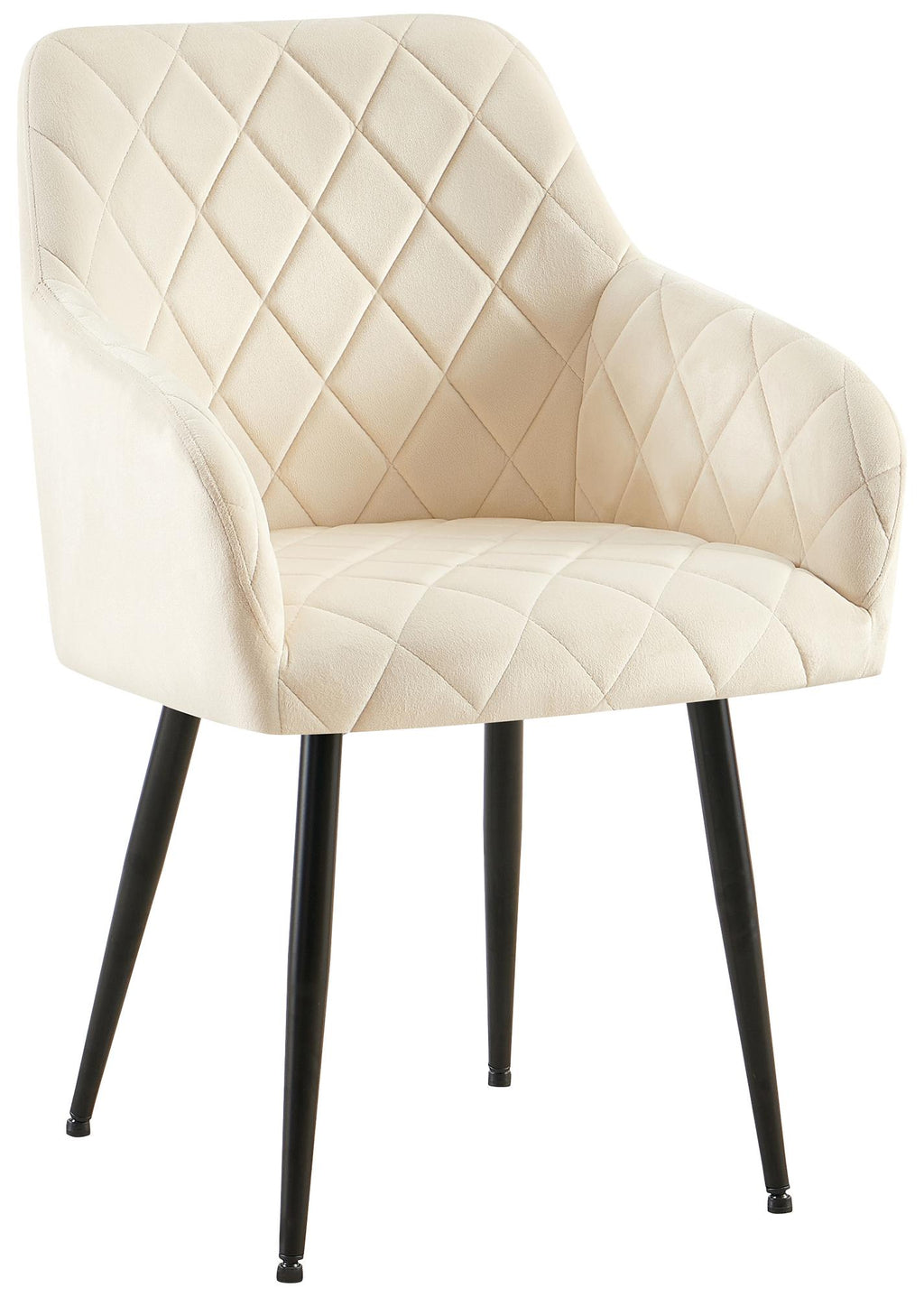 Der Stuhl verfügt über eine großzügig gepolsterte Sitzfläche mit rautenförmigem Steppmuster. Das Polster ermöglicht komfortables Sitzen auch über einen längeren Zeitraum hinaus. Ergänzt wird der Sitzkomfort durch die Rückenlehne und die Armlehnen.