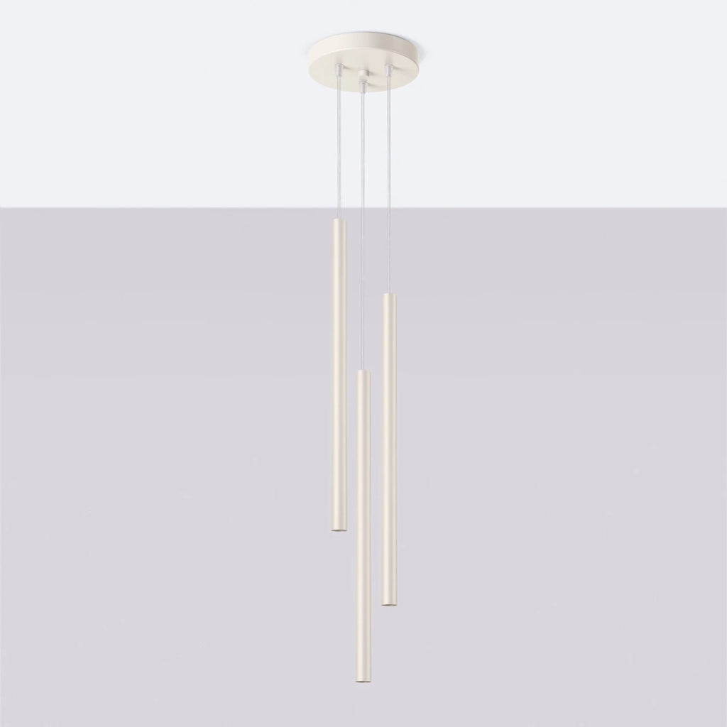 Die Pendelleuchte Pastello 3 in elegantem Beige bringt modernes Design mit minimalistischer Leichtigkeit in Ihre Räume. Die aus hochwertigem Stahl gefertigte Hängelampe präsentiert sich mit drei schlichten, zylindrischen Lichtquellen, die in einer feinen Linie von der Decke hängen – ideal für stilvolle Akzente über Esstisch, Küchentheke oder im Wohnzimmer. Ihre dezente Farbgebung fügt sich harmonisch in moderne Interieurs ein, während die schlanke Form und die präzise Verarbeitung für einen puristischen Look sorgen. Dank der höhenverstellbaren Aufhängung lässt sich die Leuchte individuell anpassen. Die Pastello-Serie steht für zeitgemäße Beleuchtung in Trendfarben – unaufdringlich, aber ausdrucksstark.
