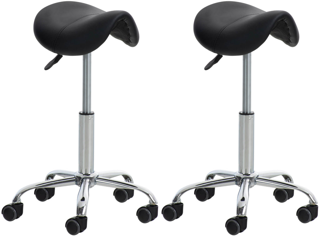 Het is ideaal voor dokterspraktijken, massage- en schoonheidssalons. Comfortabel zittend op de draaibare zadelzit met verstelbare zithoogte rol je door de kamer en werk je flexibeler. Deze draaikruk is voorzien van een onderhoudsvriendelijke kunstleren bekleding, voorzien van sierstiksels. Het stevige frame is gemaakt van metaal met chroomlook en staat op 5 lichtlopende wielen waarmee je altijd gemakkelijk en losjes over harde vloeren of tapijten rolt.