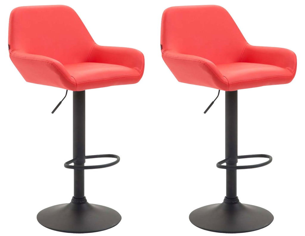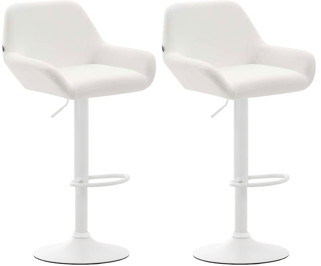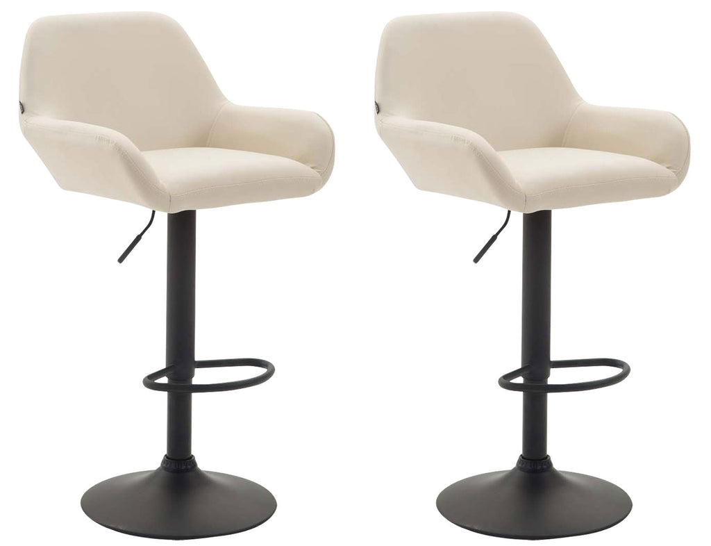 De barkruk bestaat uit een fauteuilvormige, dik gevoerde zitting met een kunstleren bekleding. Dankzij de gevoerde zitting en rugleuning biedt de barkruk een hoog zitcomfort. De zitting van de barkruk is 360° vrij draaibaar en zit bijzonder comfortabel dankzij de ergonomisch gevormde zitting. Het frame van matzwart metaal met trompetonderstel geeft de barkruk de nodige stabiliteit. Door middel van een gaslift is de barstoel traploos in hoogte verstelbaar en eenvoudig aan te passen aan iedere baliehoogte. De geïntegreerde voetsteun is eveneens gemaakt van matzwart metaal en biedt ook gedurende langere tijd een comfortabel en veilig zitcomfort. Onder de trompetbasis bevindt zich een vloerbeschermer die uw vloer beschermt tegen lelijke krassen. Vuil kan eenvoudig worden verwijderd met een vochtige katoenen doek en een geschikt stofzuigeropzetstuk. De Braga barkruk is verkrijgbaar in veel verschillende zitkleuren. Kies je persoonlijke favoriet uit maximaal acht kleuren: bruin, crème, grijs, groen, oranje, rood, zwart of wit. Materiaalsamenstelling: 100% polyurethaan