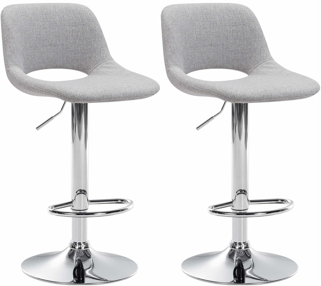 Details: Totale hoogte: 86 - 107 cm Totale breedte: 42 cm Totale diepte: 46 cm Zithoogte: 60 - 81 cm Zitting (B x D): 42 x 36 cm Hoogte rugleuning: 23 cm Max. draagvermogen: 110 kg Gewicht: 6 kg Materiaalsamenstelling: 100% polyester Inhoud: 2 barkrukken