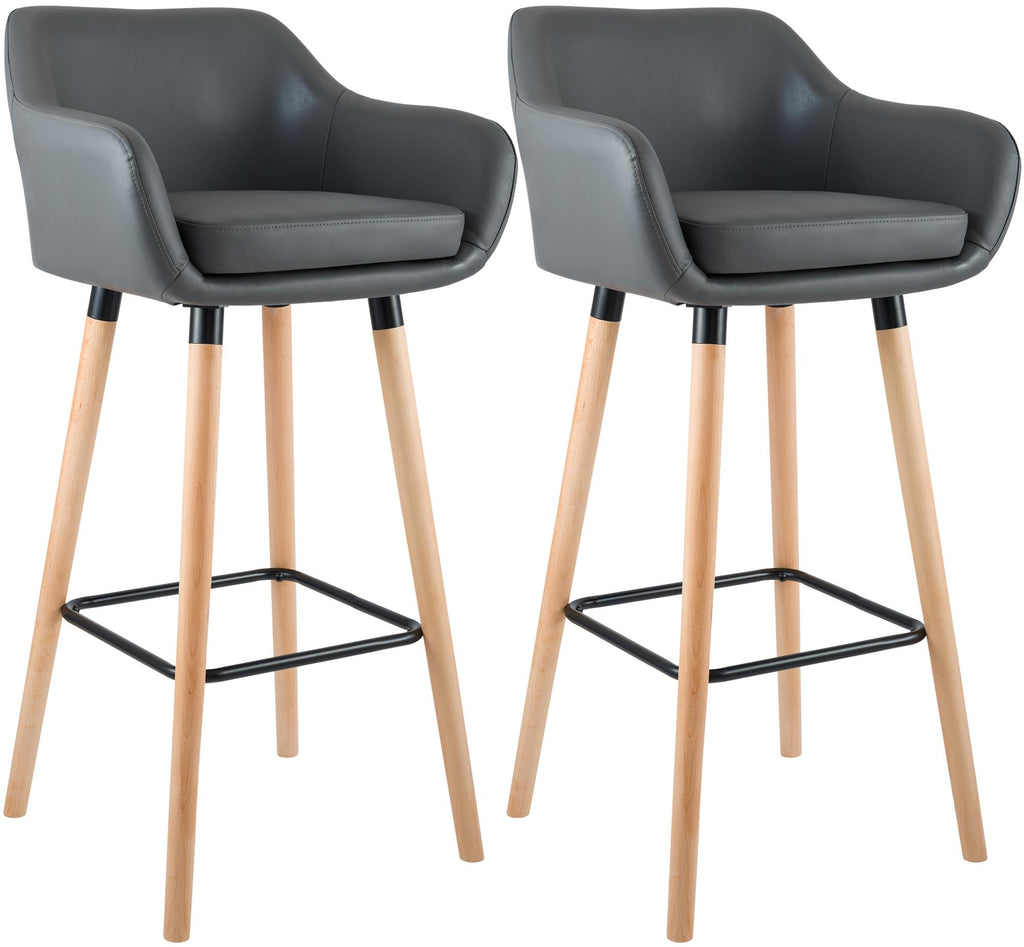 Set van 2 barkrukken Grant kunstleer De barkruk heeft een houten frame en kunstleren zittingen. De fauteuilachtige stoelen zijn comfortabel gevoerd en gemakkelijk schoon te maken. Je kunt de hoezen eenvoudig schoonmaken met een vochtige doek. Daarnaast zijn de stoelen voorzien van afneembare kussens en klittenbandsluitingen. Deze voorkomen dat de kussens wegglijden. Voetsteunen zorgen voor een comfortabele en rechte zithouding. Onder het 1,20 meter lange frame zitten vloerbeschermers om lelijke krassen op je vloer te voorkomen. Je kunt kiezen uit maximaal 11 kleuren.
