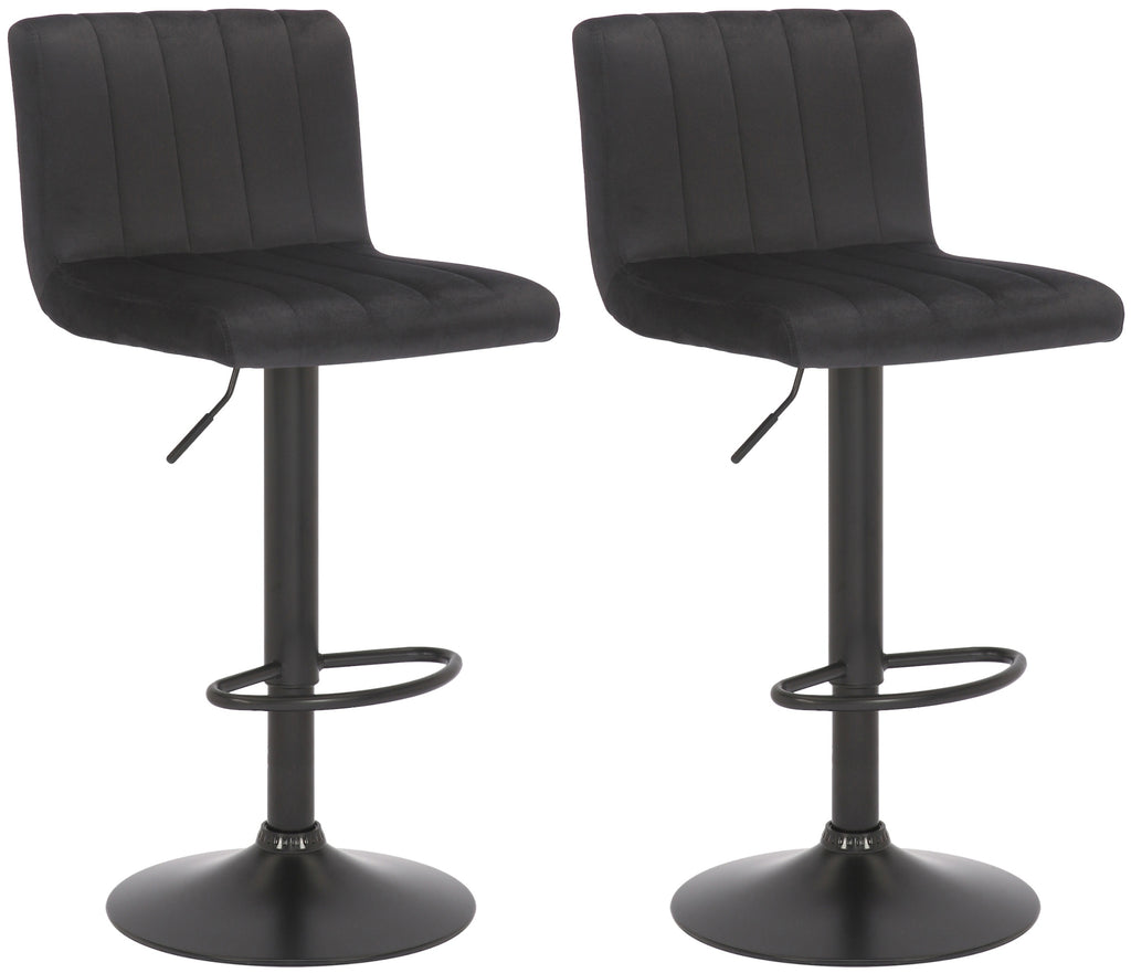 De Jamie barkrukken uit deze set van 2 zijn een geweldige blikvanger met hun verticale doorgestikte patronen. In combinatie met de matzwarte frames passen deze krukjes uitstekend in moderne ruimtes.