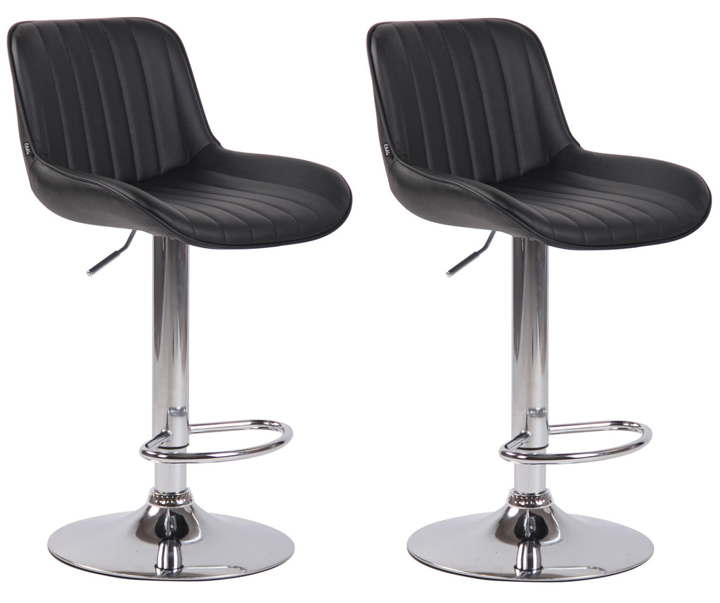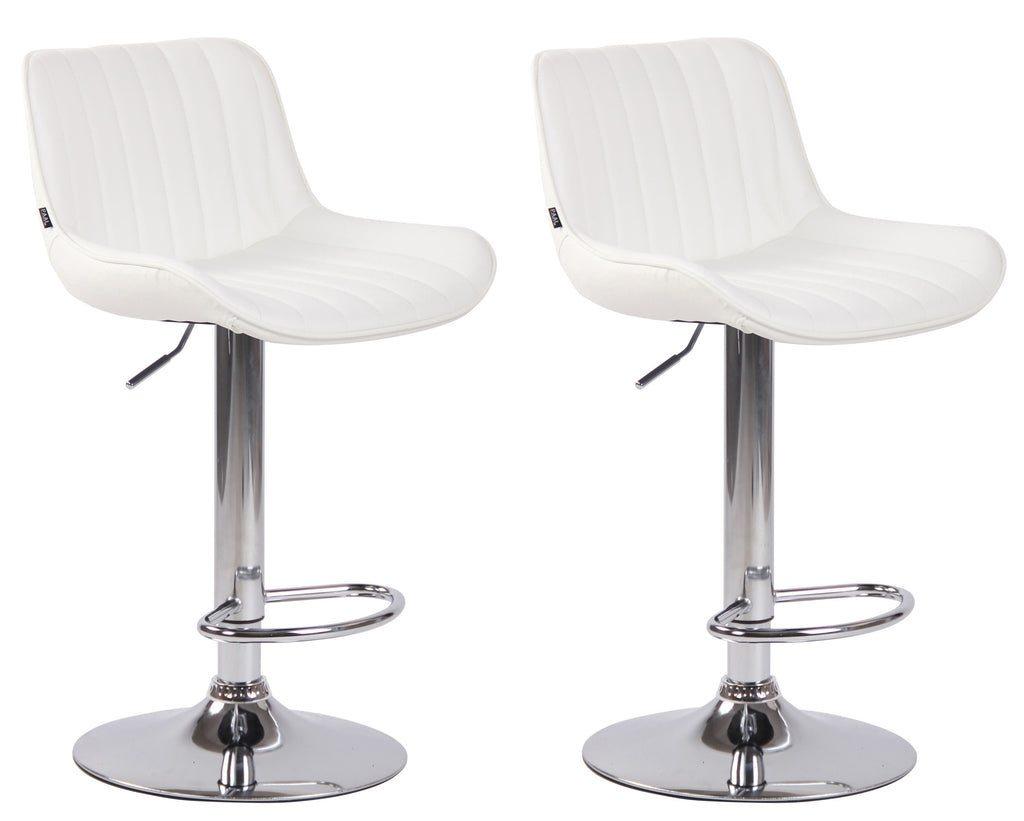 Deze barkrukken geven elke ruimte een exclusieve uitstraling en overtuigen niet alleen door hun uitstekende ziteigenschappen, maar ook door hun moderne design. De zitting is bekleed met een onderhoudsvriendelijke kunstleren bekleding. Door middel van de gasveer is dit model traploos op de gewenste hoogte te verstellen, waardoor het ideaal is voor iedere baliehoogte. De voetensteun, die zorgt voor een zeer goed zitcomfort, is synchroon verstelbaar met de hoogte van de zitting. Met de voetensteun is de zitting 360° draaibaar. Het frame is gemaakt van chroomlook metaal, wit of zwart metaal. Er zitten ook vloerbeschermers onder de trompetbasis om te voorkomen dat oppervlakken bekrast raken. Materiaalsamenstelling: 100% kunstleer