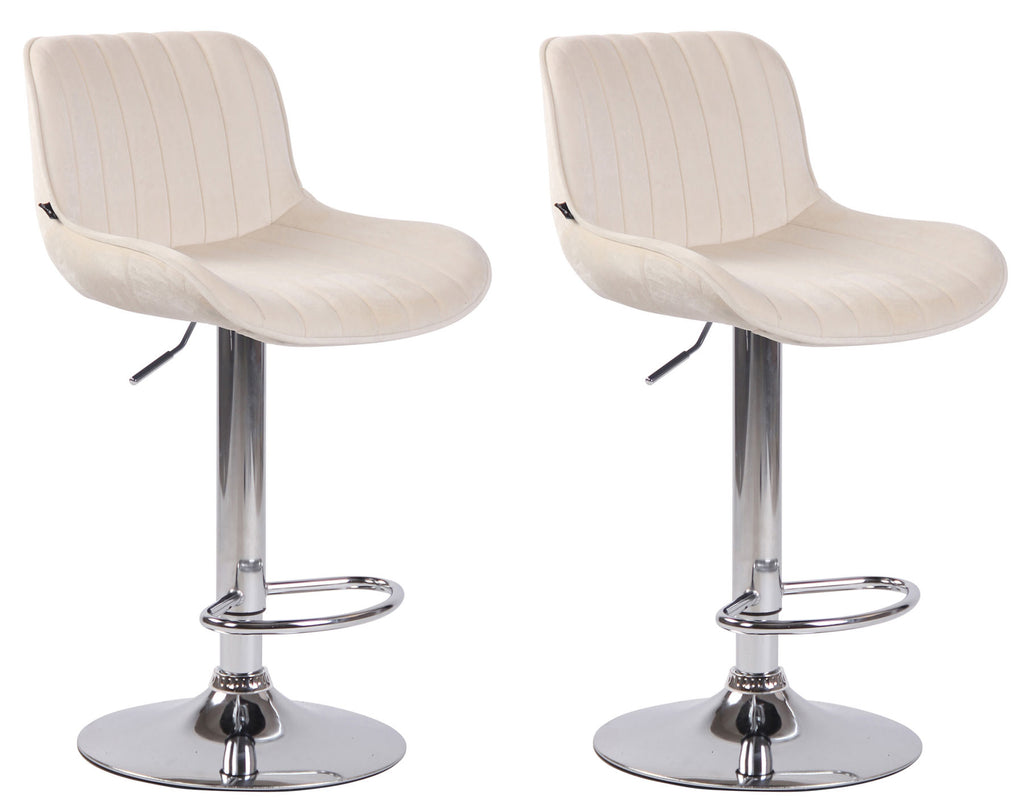 Met de set van 2 Lentini fluwelen barkrukken wordt de eetkamer het middelpunt. Op twee comfortabel beklede krukjes kunt u in kleine groepjes genieten van heerlijke maaltijden. De zitting en rugleuning zijn gemaakt van onderhoudsvriendelijk fluweel. Het moderne comfort wordt ondersteund door een voetensteun, die synchroon met de zitting verstelbaar is. Beide kunnen samen 360° worden gedraaid. Bovendien maakt het traploos in hoogte verstelbare metalen frame een individuele aanpassing van de zithoogte mogelijk. Het eindigt onderaan met een trompetvoet. Dankzij vloerbeschermers is de set geschikt voor gevoelige vloerbedekkingen zoals tegels of parket. In zeven tijdloze kleuren rondt de set van 2 Lentini fluwelen barkrukken elke sfeer stijlvol af.