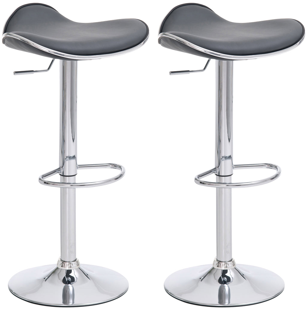 De Shanghai barkrukkenset valt op door zijn zachte rondingen en elegante uitstraling. Hij is traploos in hoogte verstelbaar. Dankzij een gasveerhendel is hij geschikt voor alle baliehoogtes. De zitting en voetensteun zijn 360° draaibaar. Het metalen frame is volledig verchroomd. De kunstleren zitting is gemakkelijk schoon te maken. Ook onder de voet van de barkruk zit een rubberen ring. De set beschermt daardoor gevoelige vloeren.