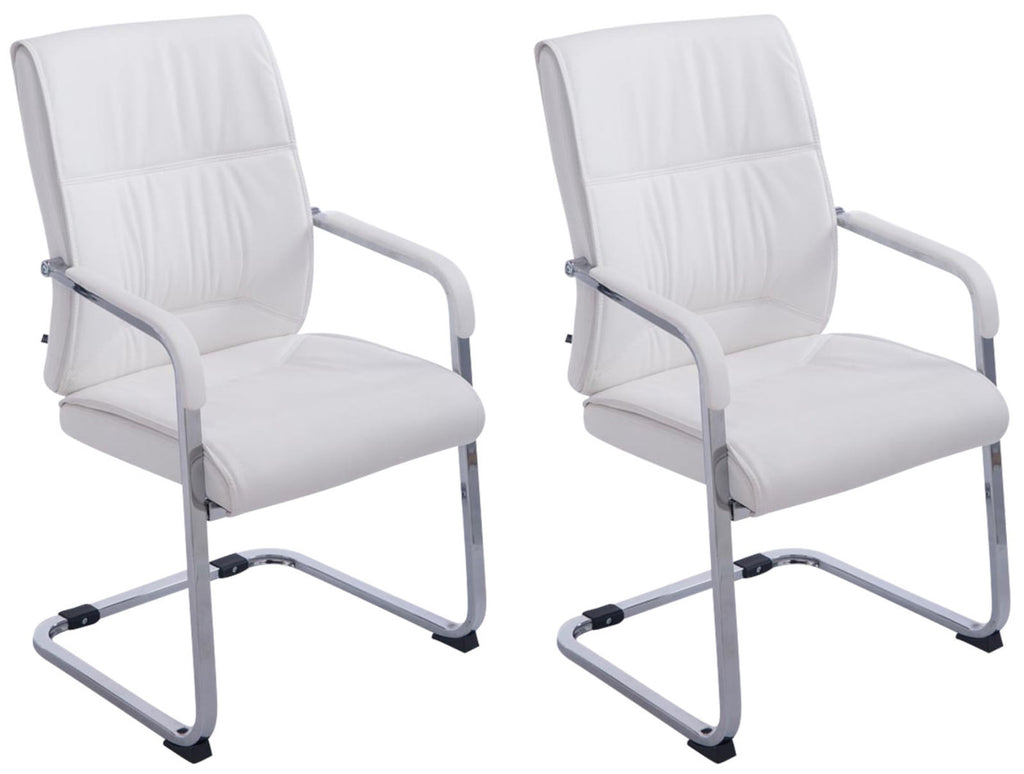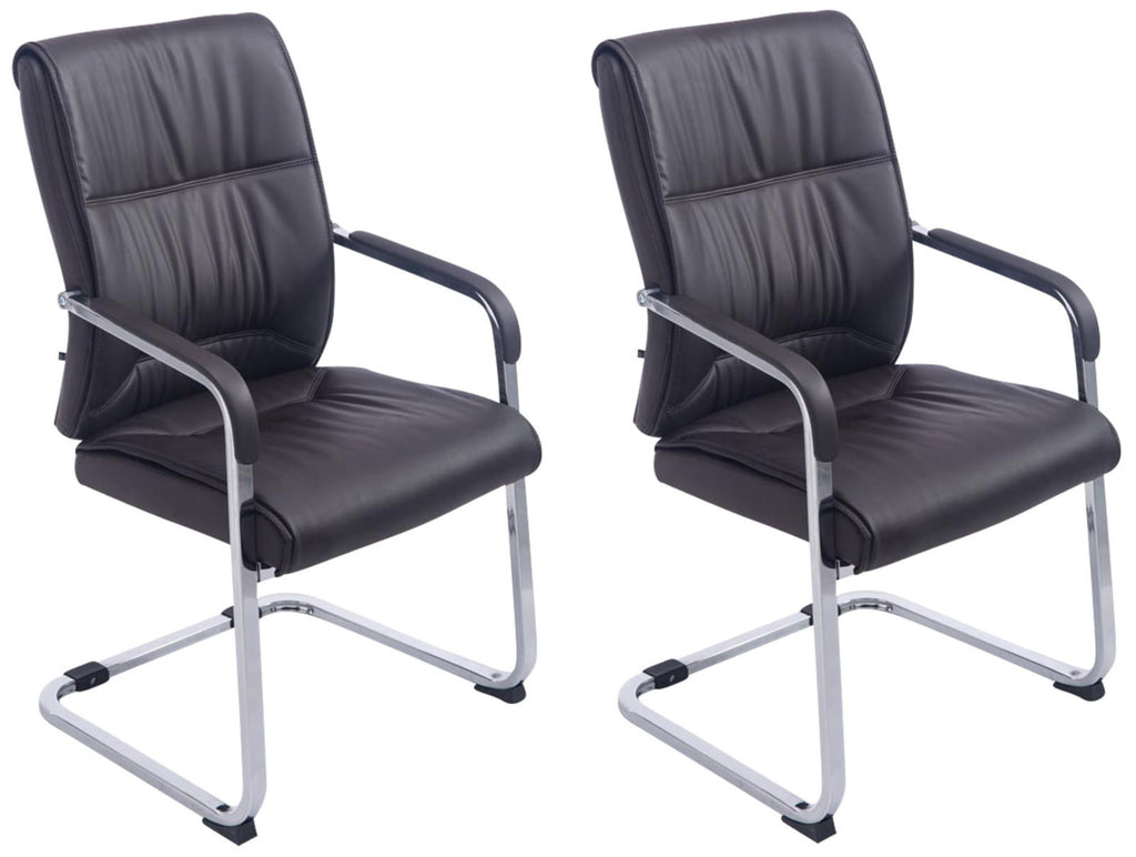 Die Freischwinger verleihen jedem Raum einen exklusiven Look und bestechen durch hervorragende Sitzeigenschaften und ihr modernes Design. Frei schwingend passen sie sich der Beinlänge und dem Gewicht des Sitzenden an. Dank der ergonomisch geformten Sitzfläche und den bequem gepolsterten Armlehnen werden auch längere Sitzphasen nicht anstrengend. Die bequeme Polsterung ist dabei mit pflegeleichtem Kunstleder bezogen. Die Stühle stehen auf dem robusten und extra verstärkten Metall-Gestell einfach bei jedem Anlass gut da. Diese Stühle sind ideal für große und schwere Personen geeignet, da sie bis zu max. 260 kg belastbar sind.