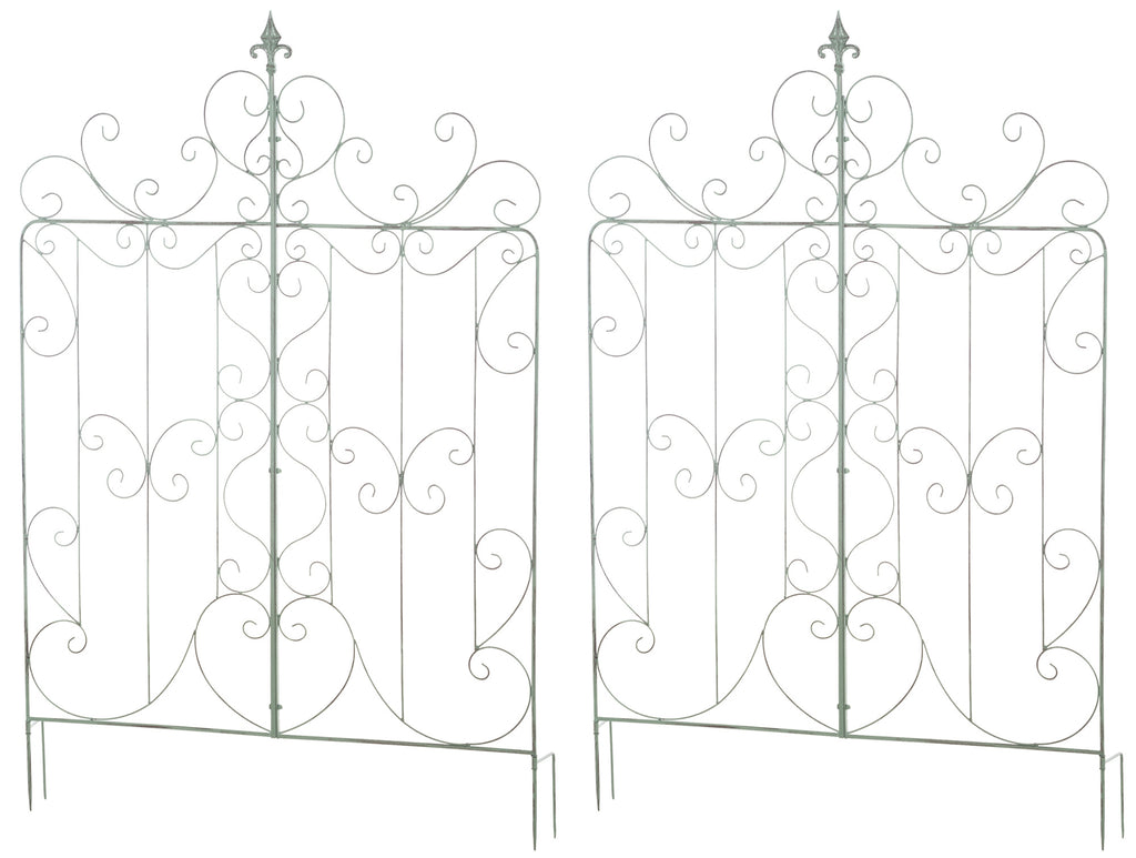 De Mandevilla traliewerkset van 2 is ontworpen in een rustieke landhuisstijl en maakt indruk met zijn klassieke design en prachtige decoraties. Het is perfect voor tuinontwerp en is perfect voor het decoratief tentoonstellen van planten. Het vrijstaande traliewerk is eenvoudig te monteren. De twee helften hoeven alleen maar aan elkaar te worden geschroefd en met behulp van de grondhaken in de grond te worden gestoken.