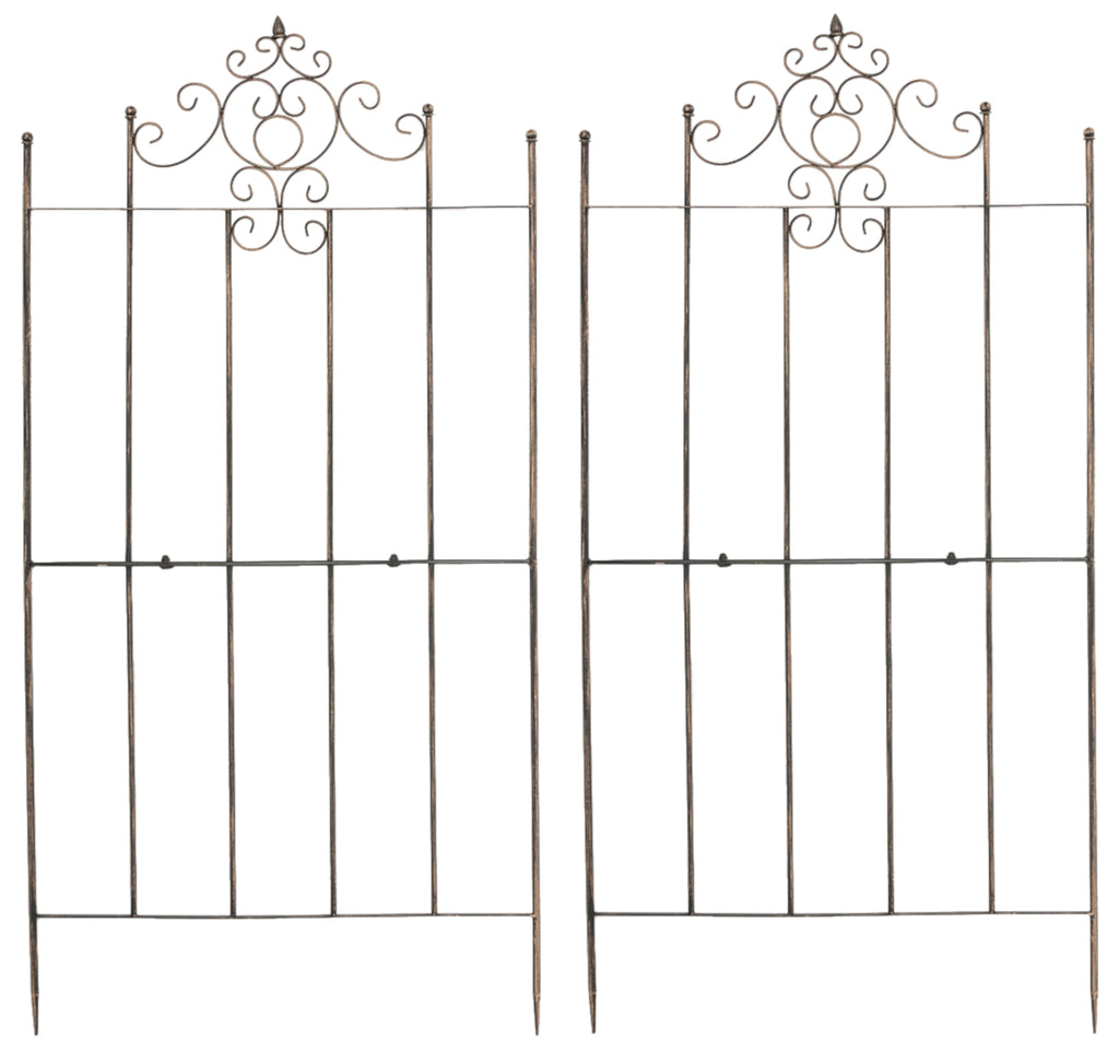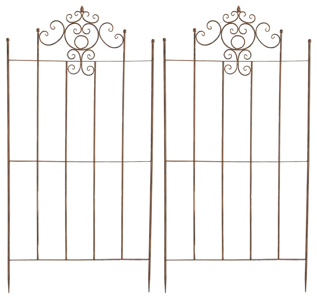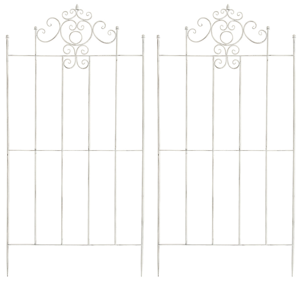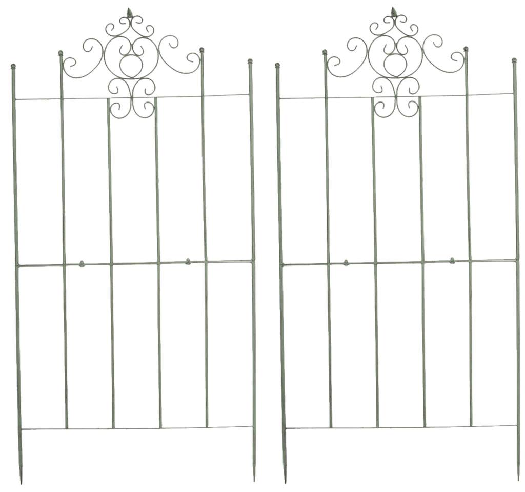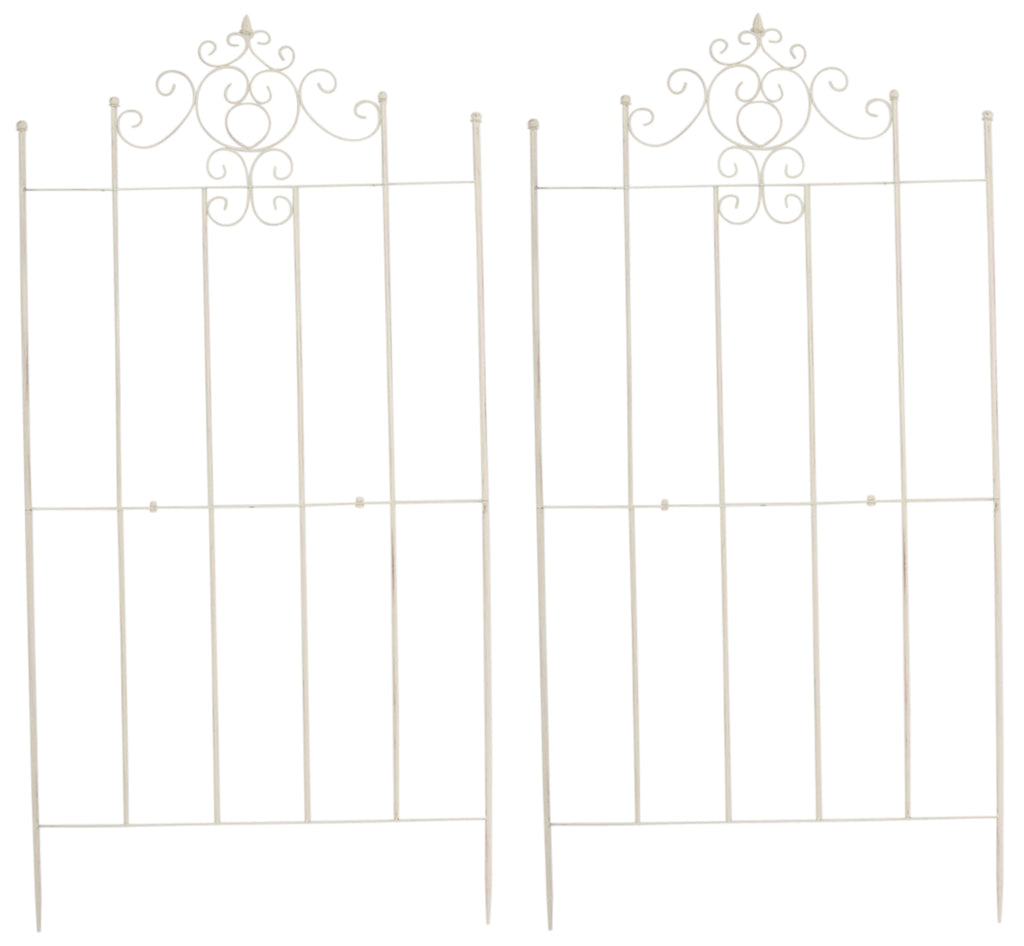 De set van 2 Paula hekjes is een exclusief hekwerk in een rustieke landhuisstijl. Klassiek ontwerp met mooie decoraties. Perfect voor tuinontwerp. Zet uw planten decoratief neer of laat het hekwerk als blikvanger fungeren. Verkrijgbaar in verschillende kleuren. Lichtgewicht en eenvoudig te monteren.