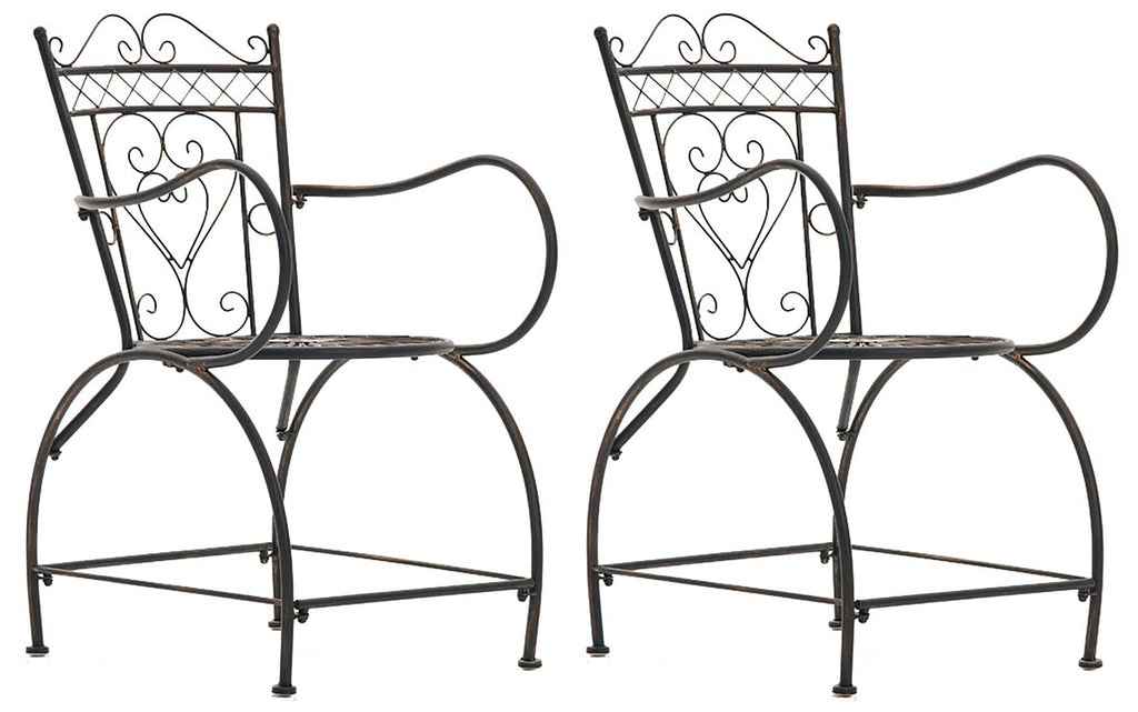 Met de set van 2 Sheela stoelen u kunt buiten genieten van idyllische momenten. Met zijn stijlvolle, gedetailleerde vormgeving vindt hij zijn plaats in de tuin en op het balkon. Het delicate ijzeren frame maakt indruk met liefdevolle, handgemaakte decoraties. Een met de hand nagemaakte antieke patina verfijnt de oppervlakken van de tuinstoelen. In de kleuren antiekbruin, antiekwit, antiekcrème, antiekgroen, brons en wit is de set van 2 Sheela stoelen prachtig te combineren met vele inrichtingsstijlen.