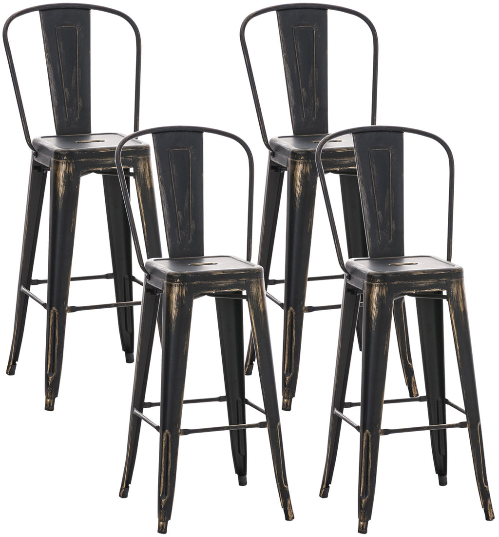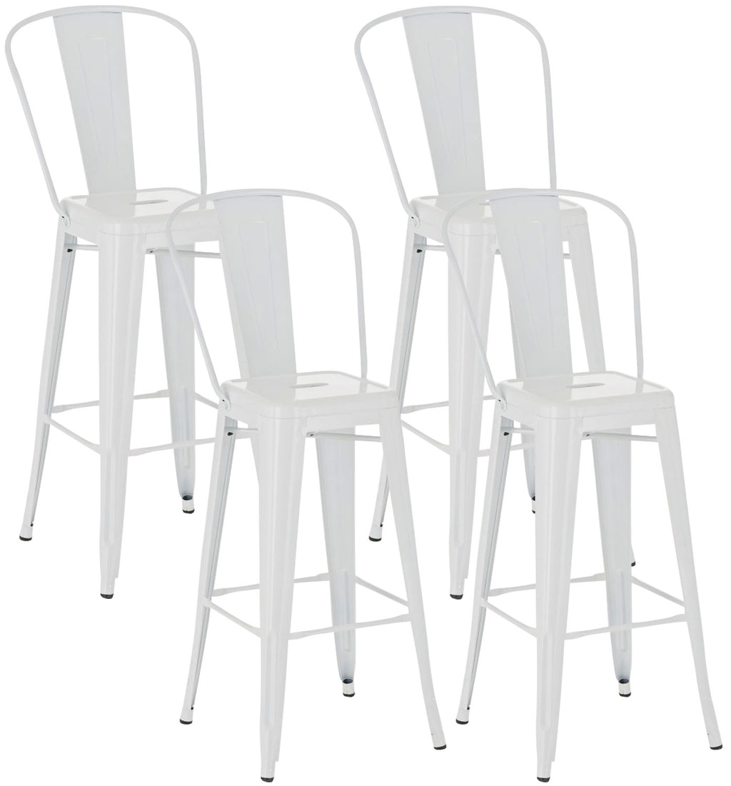 Set van 4 barkrukken Aiden - klassiek & robuust! Deze barkrukken van gepoedercoat metaal tonen altijd echte stabiliteit. Tussen de poten en onder de zitting bevinden zich dwarsbalken, die voor een hoge stabiliteit zorgen. De eerste dienen tevens als comfortabele voetsteun. Praktisch: het gelakte oppervlak is uiterst onderhoudsvriendelijk en kan eenvoudig met een vochtige doek worden gereinigd.