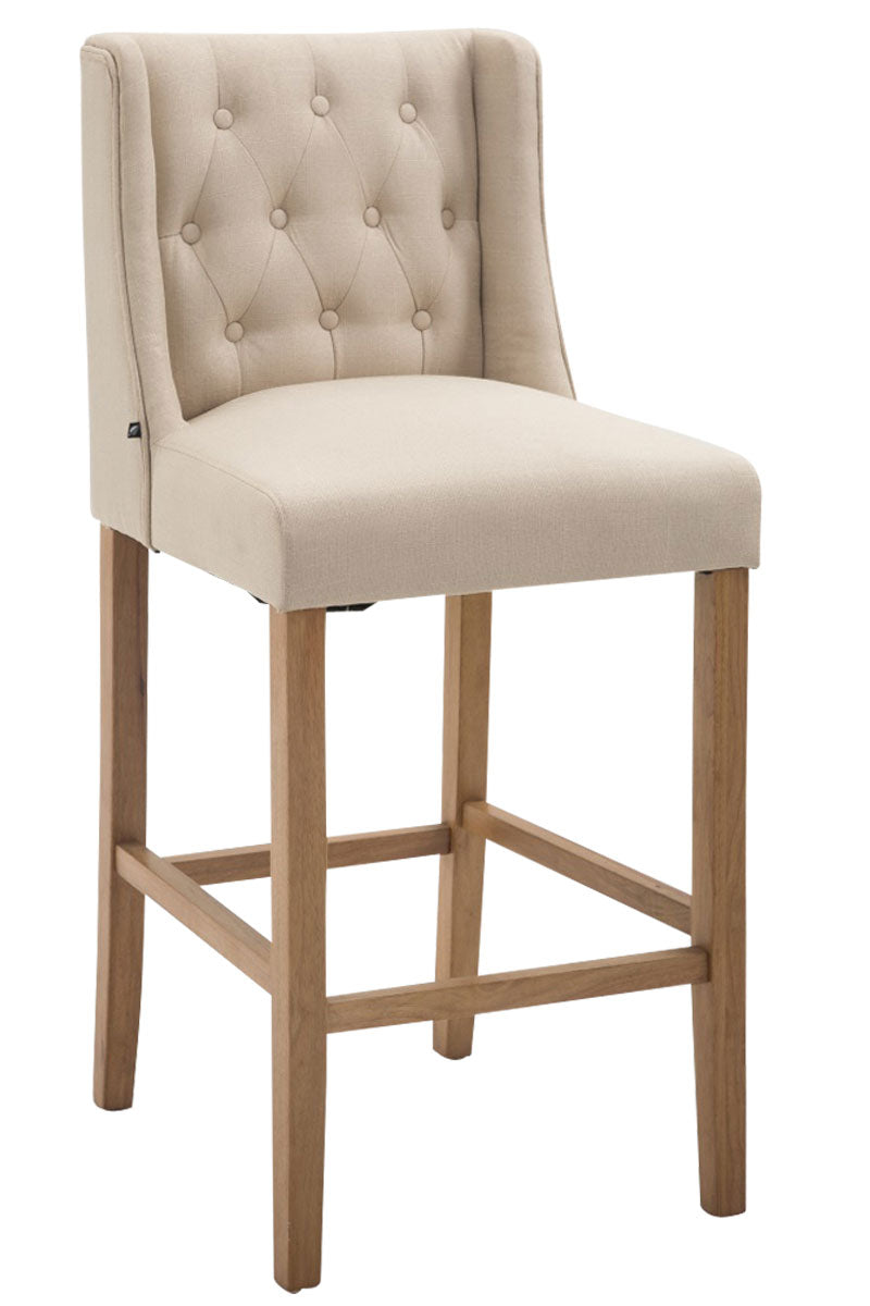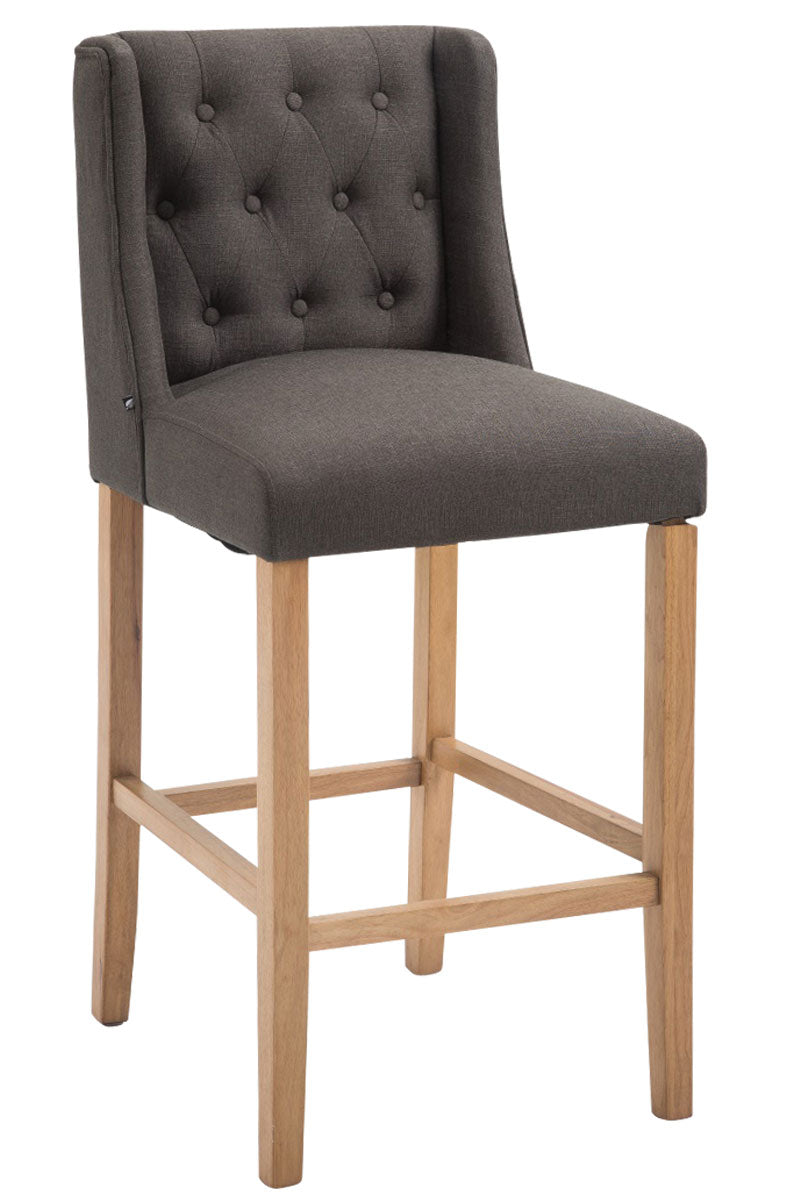 Met deze kruk geef je elke woonruimte een extravagante sfeer. Deze barkruk krijgt zijn elegante design dankzij een prachtig gewatteerde stoffen bekleding. Bovendien wordt een hoog zitcomfort gegarandeerd door de weelderige vulling. De kruisbeugel fungeert als ondersteunende voetensteun, zodat u ook na meerdere uren nog van een aangenaam comfort kunt genieten. Het vierpootsframe van rubberhout zorgt voor stabiliteit en stabiliteit en maakt het uiterlijk van de barkruk compleet. Een echt pareltje voor thuis, op beurzen of in de horeca!