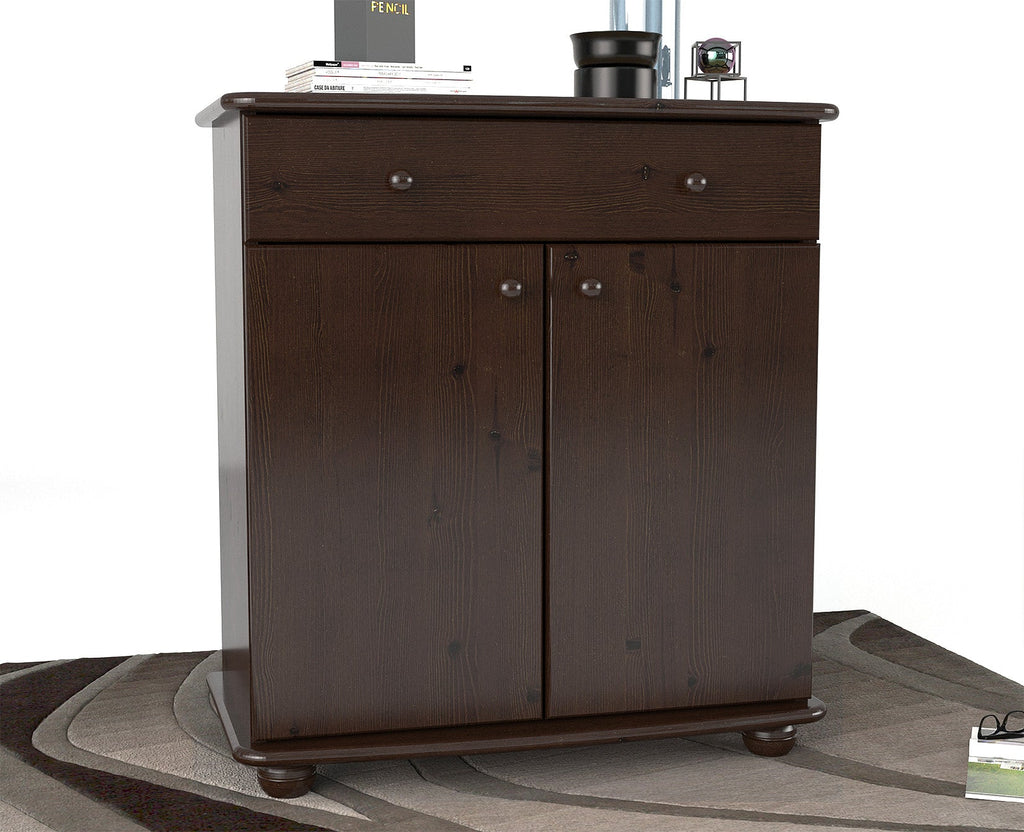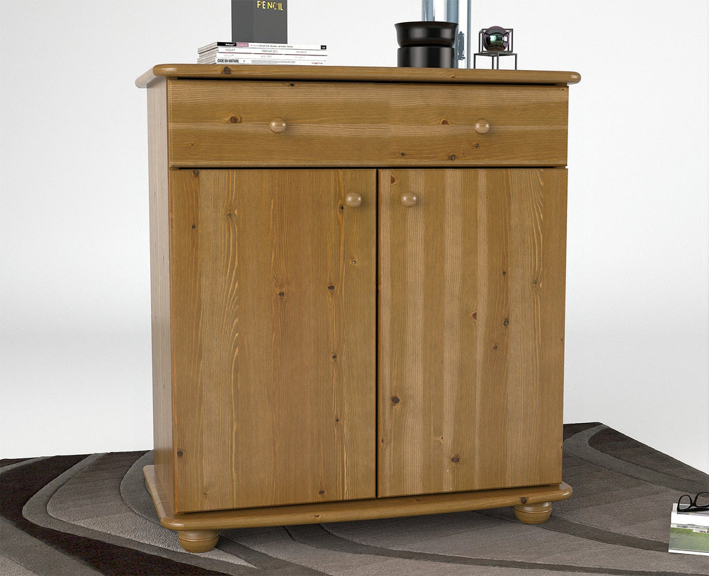 Keywords: Bio Kiefer Massivholz Kommode, 2-türige Kommode mit Schublade, nachhaltige Holzkommode, Massivholzkommode, skandinavische Möbel, ökologische Kommode, Möbel aus Kiefer, natürliche Holzkommode