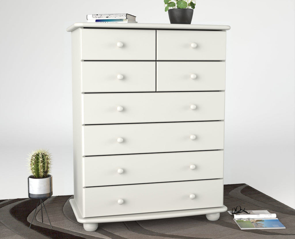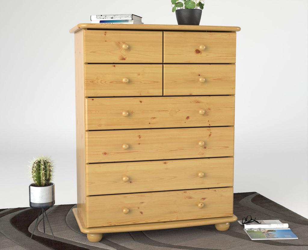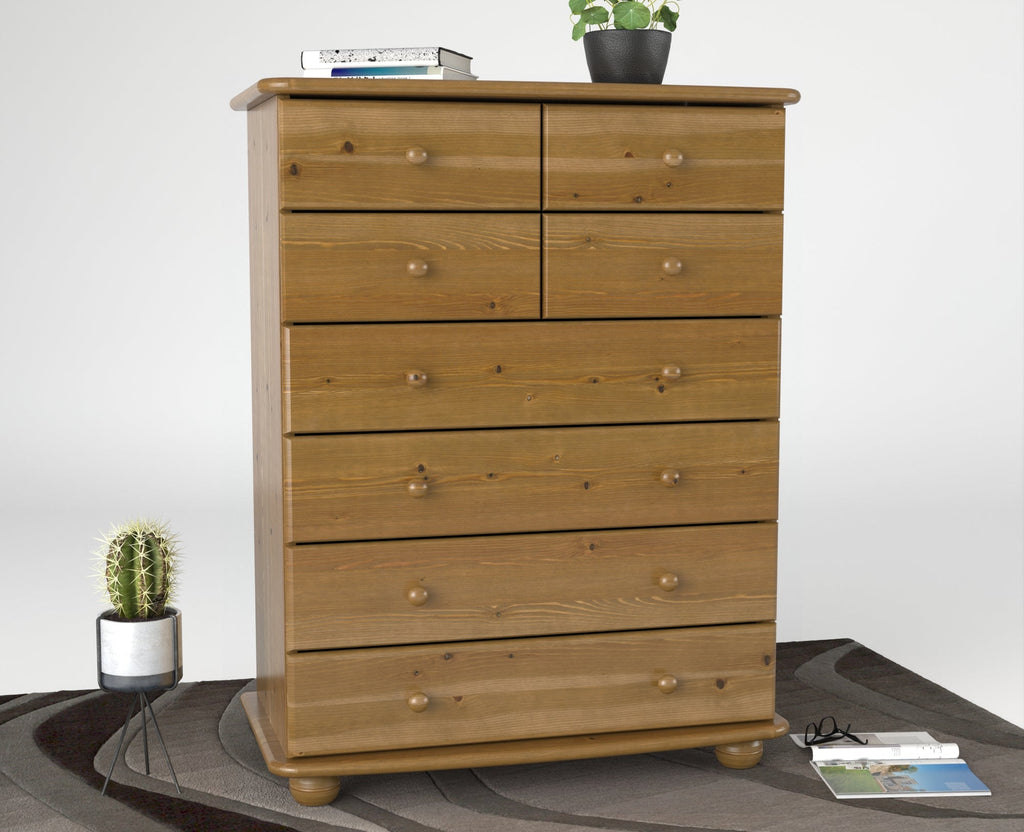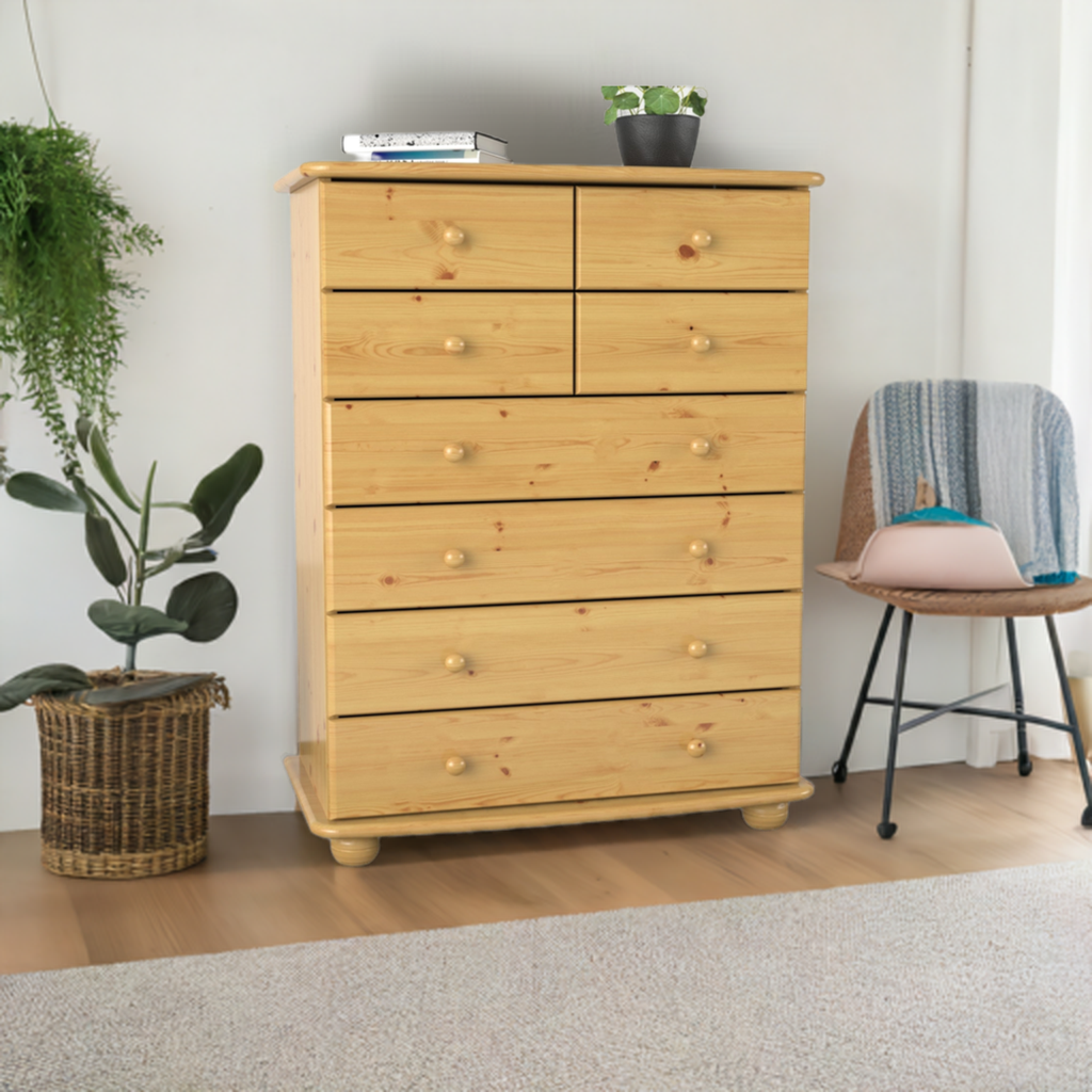 Bringen Sie mehr Ordnung und stilvolle Natürlichkeit in Ihr Zuhause – bestellen Sie jetzt Ihre Bio Kiefer Massivholz Kommode mit 8 Schubladen!