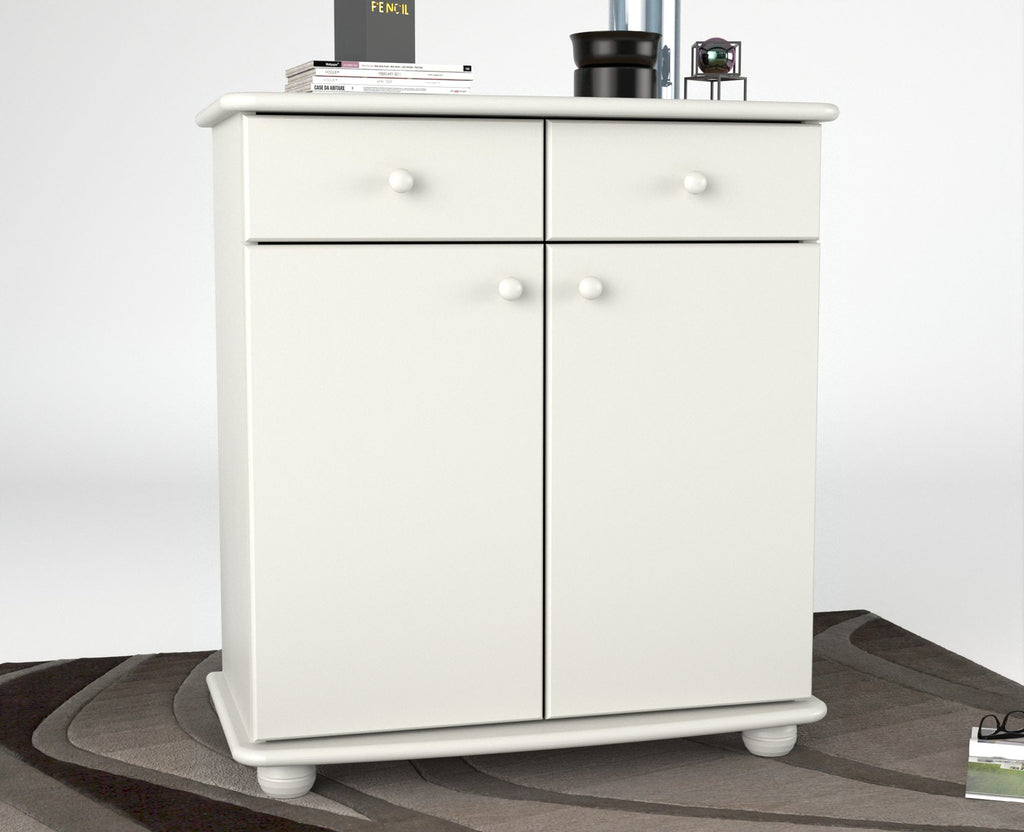 Anika Kommode Sideboard | Anrichte | 2-Schubladen 2-Türig 2-Regalfächer | 100% Bio Kiefer Massivholz
