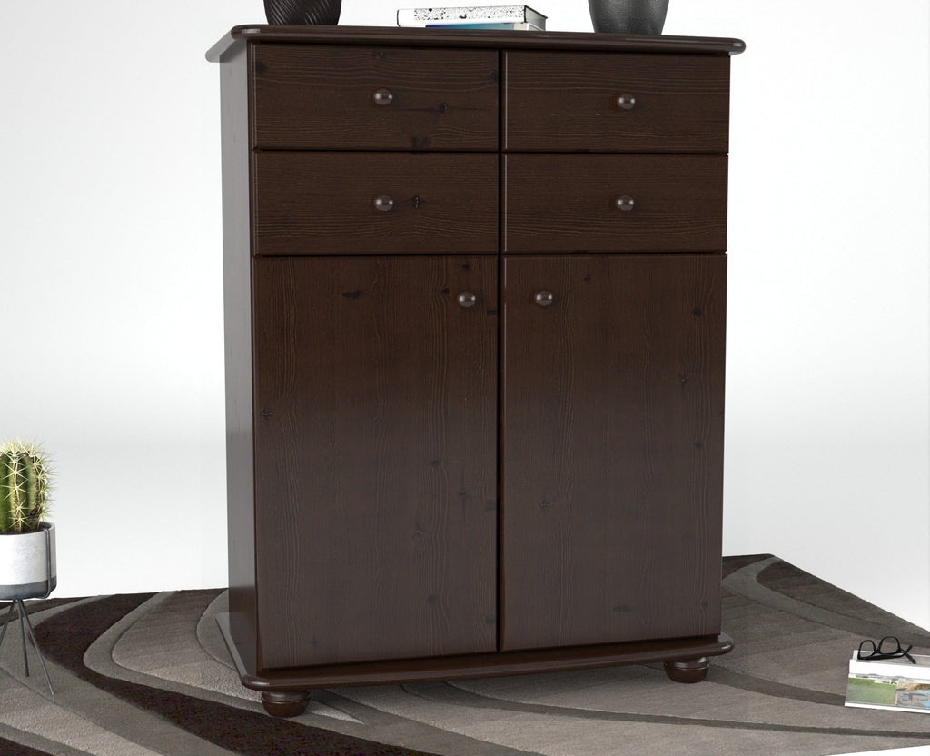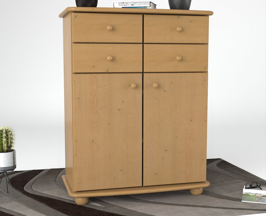 Anika Kommode Sideboard | Anrichte | 2-Türig | 4 Schubladen | 100% Bio Kiefer Massivholz