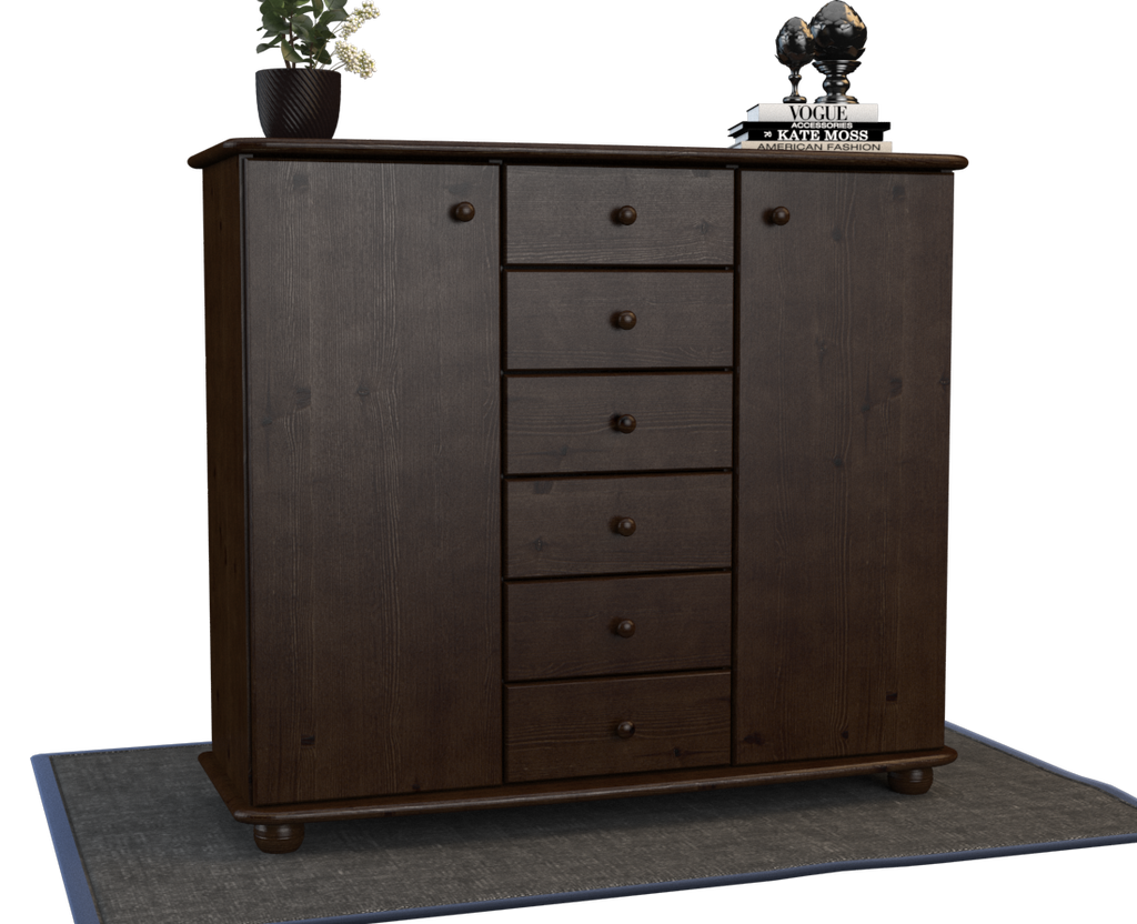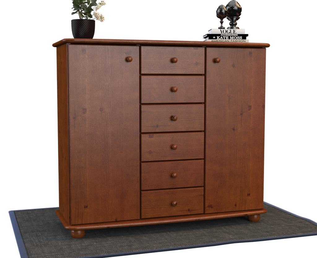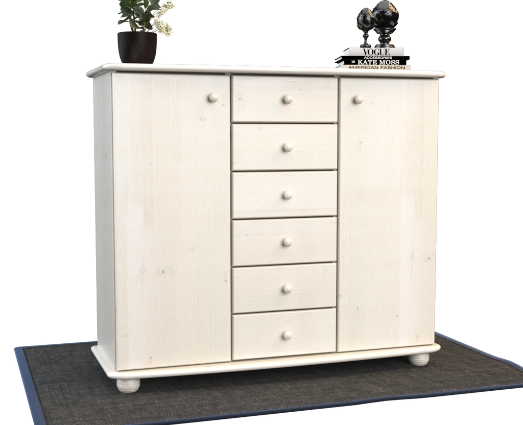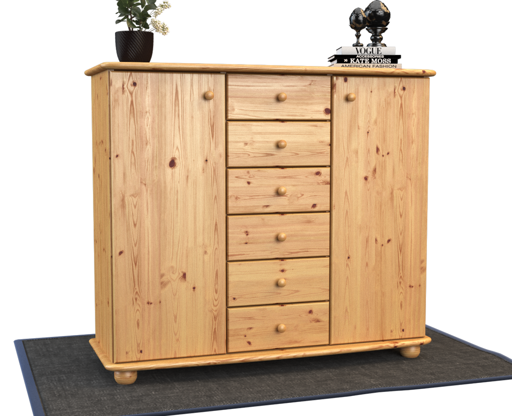 Anika Kommode Sideboard | Anrichte | 2-Türig | 6-Schubladen | 100% Bio Kiefer Massivholz
