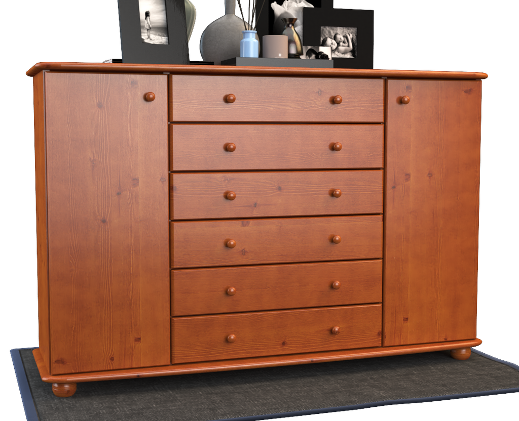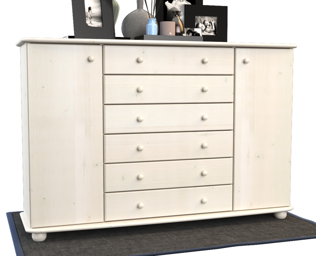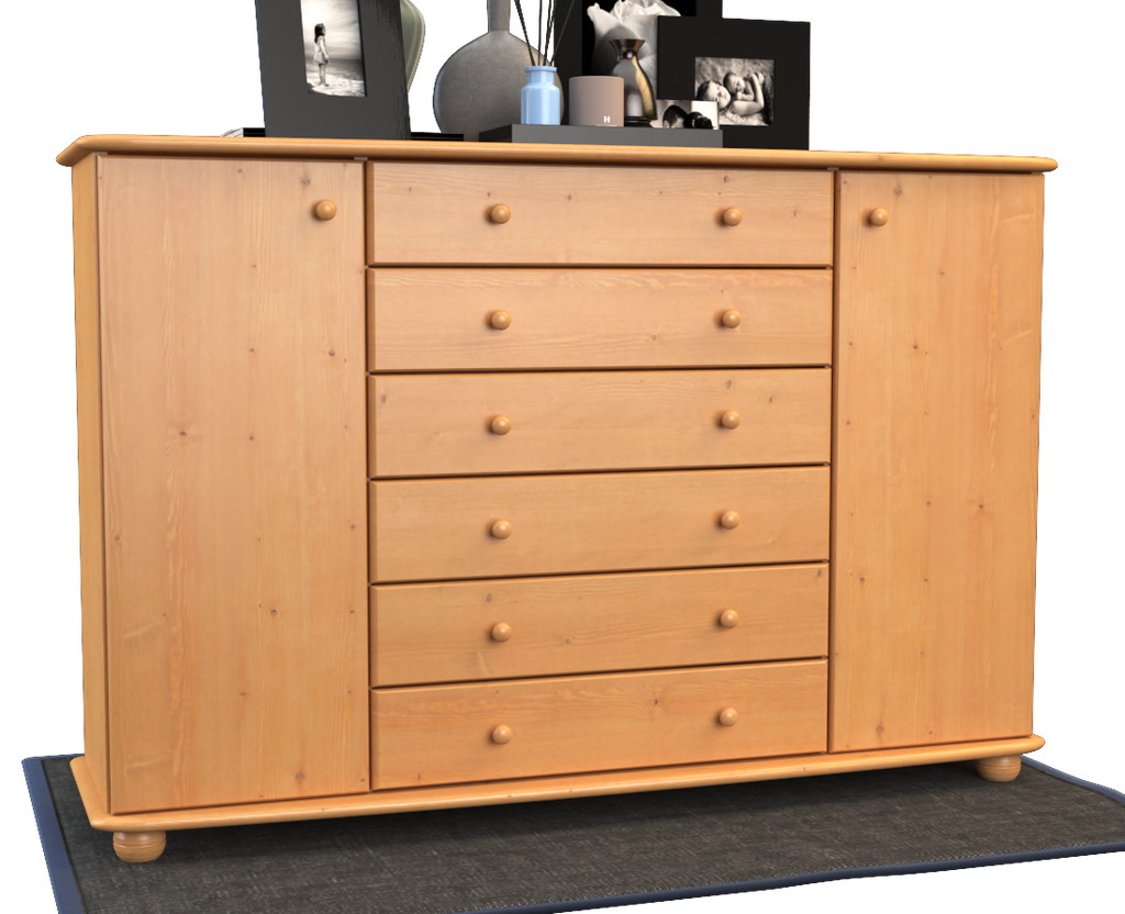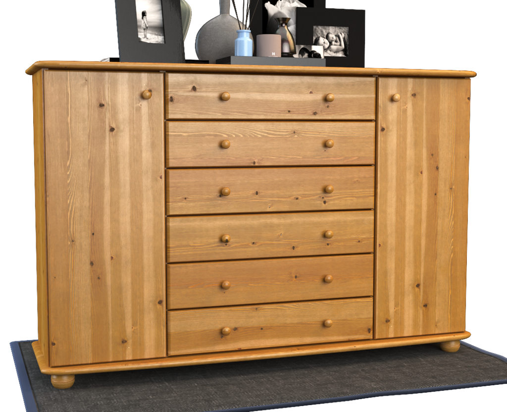 Anika Kommode XL Sideboard | Anrichte | 2-Türig | 6-Schubladen | 100% Bio Kiefer Massivholz