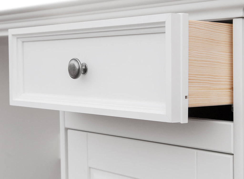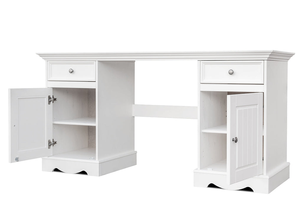 Dekorative Fräsungen & stilvolle Metallgriffe in Antiksilber – verleiht dem Schreibtisch eine elegante Note