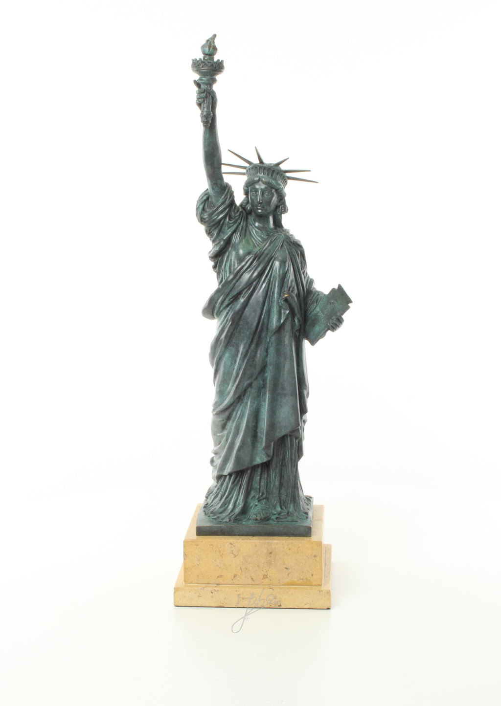 Die Bronze Skulptur „Freiheitsstatue“ ist eine detailgetreue Nachbildung des weltberühmten Symbols für Freiheit und Hoffnung. Mit einer Höhe von 61,5 cm zieht sie alle Blicke auf sich und verleiht jedem Raum eine repräsentative Note. Die fein gearbeitete Struktur der Figur sowie die edle Patina unterstreichen die handwerkliche Qualität und machen dieses Kunstwerk zu einem eindrucksvollen Dekorationsobjekt. Ob im Wohnbereich, im Büro oder als besonderes Sammlerstück – diese Skulptur bringt einen Hauch von New York in Ihr Zuhause.